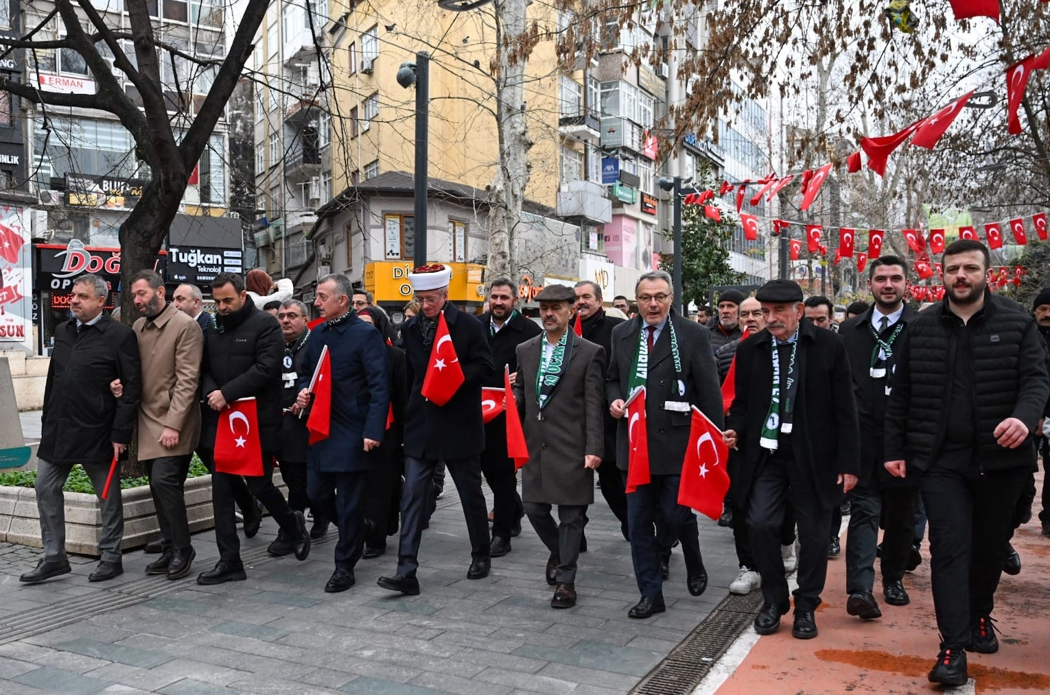 Batı Trakya Türkleri Dayanışma Derneğince organize edilen program kapsamında İzmit ilçesindeki Antikkapı Düğün Salonu'ndan Milli Kimlik ve Direniş Anıtı'na Türk bayrakları eşliğinde kortej yürüyüşü yapıldı.