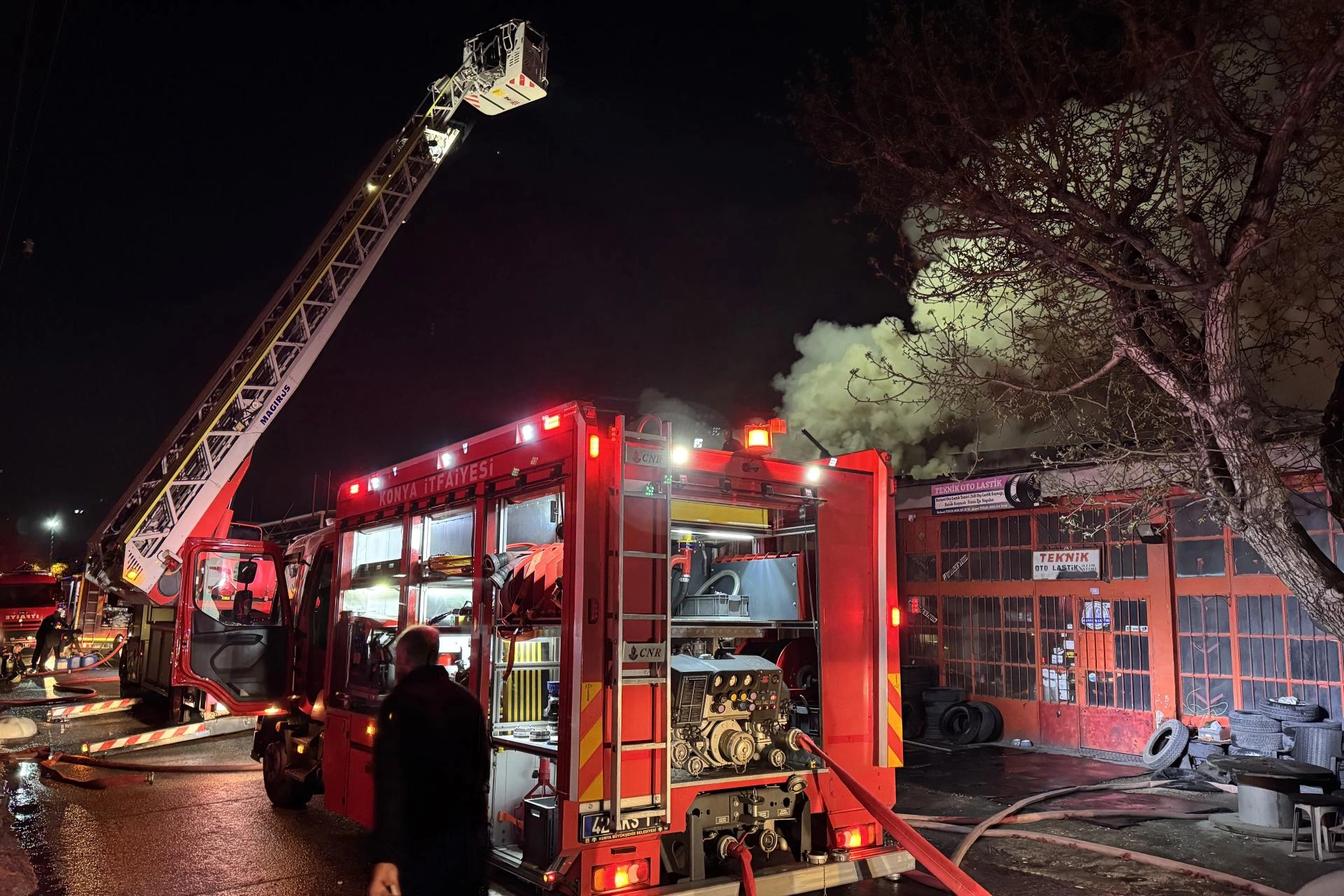Konya'da oto lastikçiler sanayisinde çıkan yangında 2 kişi yaralandı
