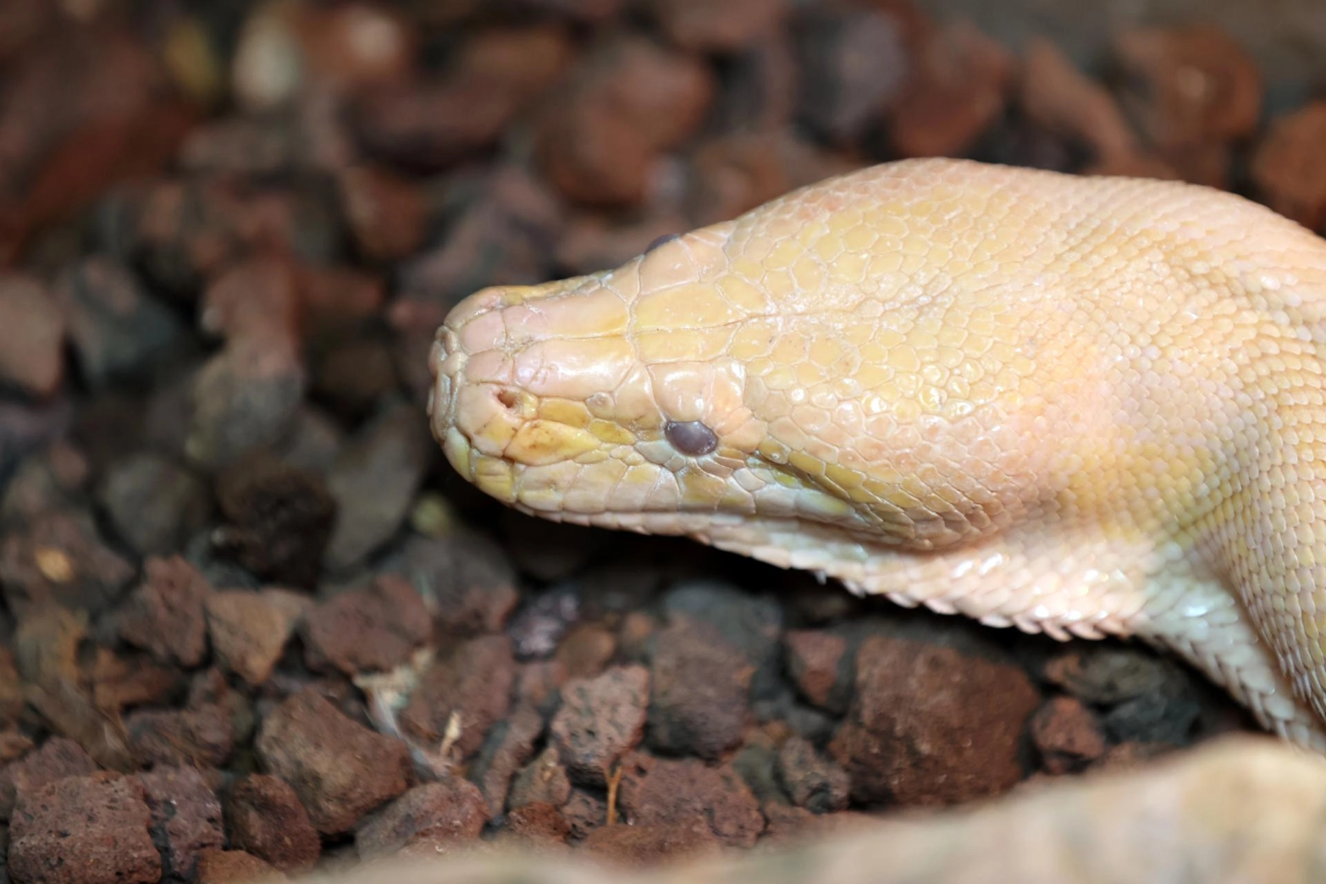 Derisinde, gözlerinde ve pullarında renklenmeyi sağlayan "melanin" pigmentinin eksikliğinden kaynaklanan albinizm nedeniyle türlerinden ayrılan ve nadir görülen yılanlara, doğal yaşam şartlarına yakın ortamda bakılıyor.