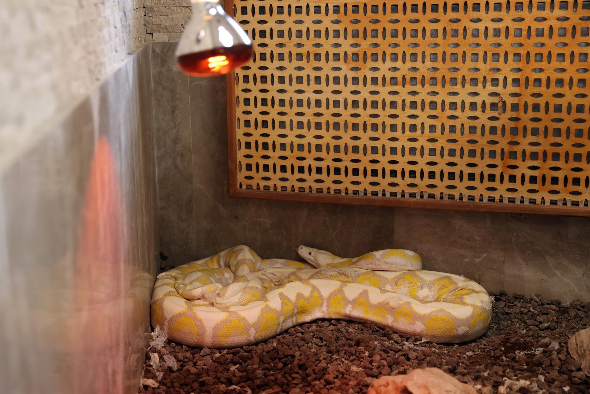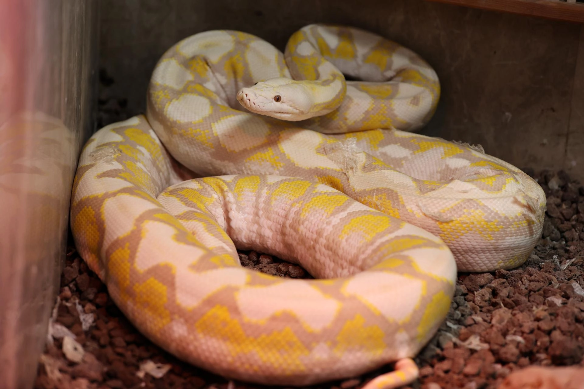 Albinizmli olması nedeniyle çevresel etkilere karşı da hassas olan pitonlar, kızılötesi lambalarla sağlanan özel ortamda, ihtiyaç duyduğu koşullarda yaşamlarını sürdürüyor.