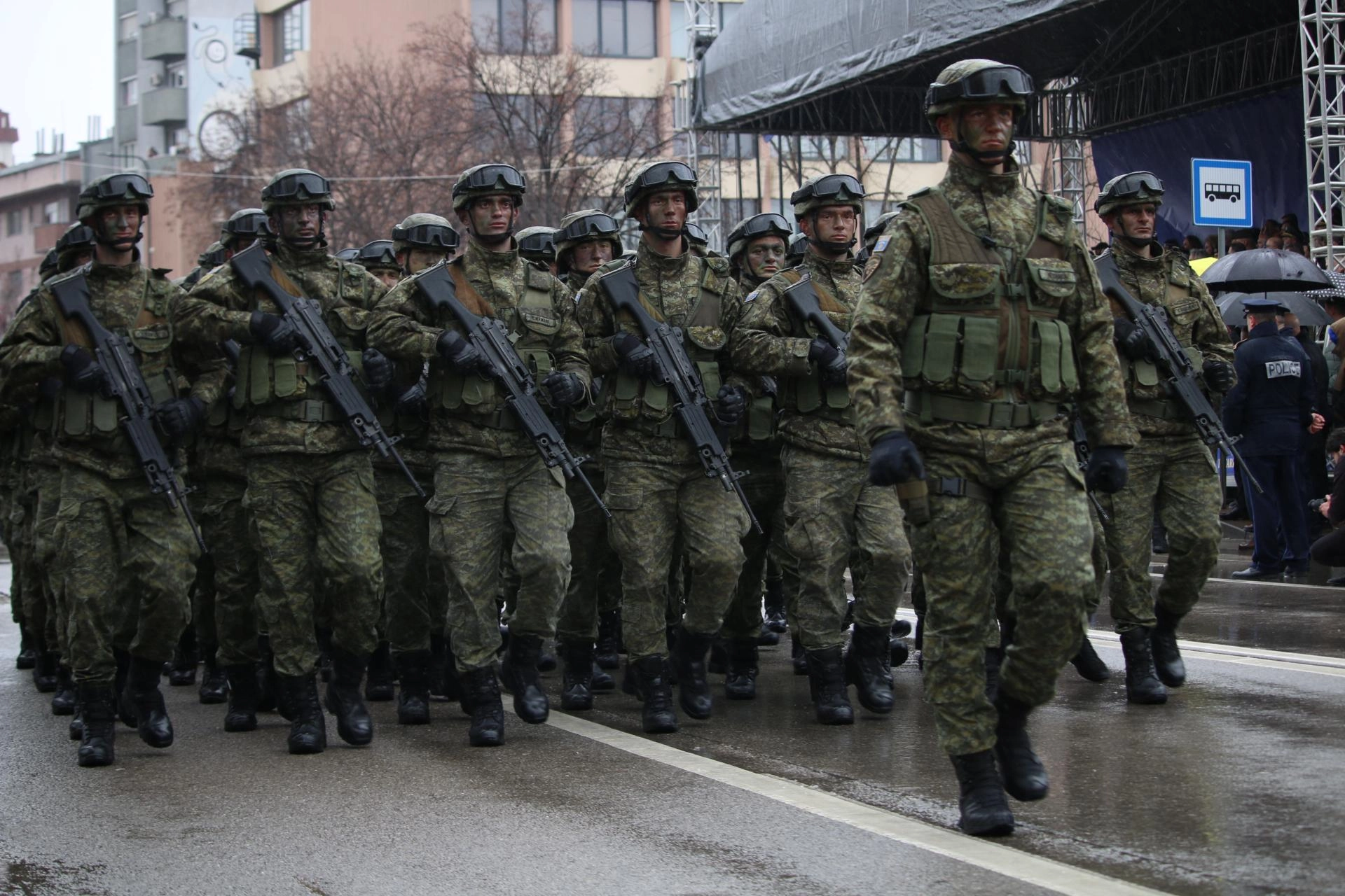 Meclisteki özel oturumun ardından Priştine'nin merkezinde Kosova Güvenlik Gücü (FSK) ve Kosova polisinin askeri geçit töreni düzenlendi. Geçit töreninde FSK ve polis birliklerince kullanılan ekipman ve araçlar sergilendi.