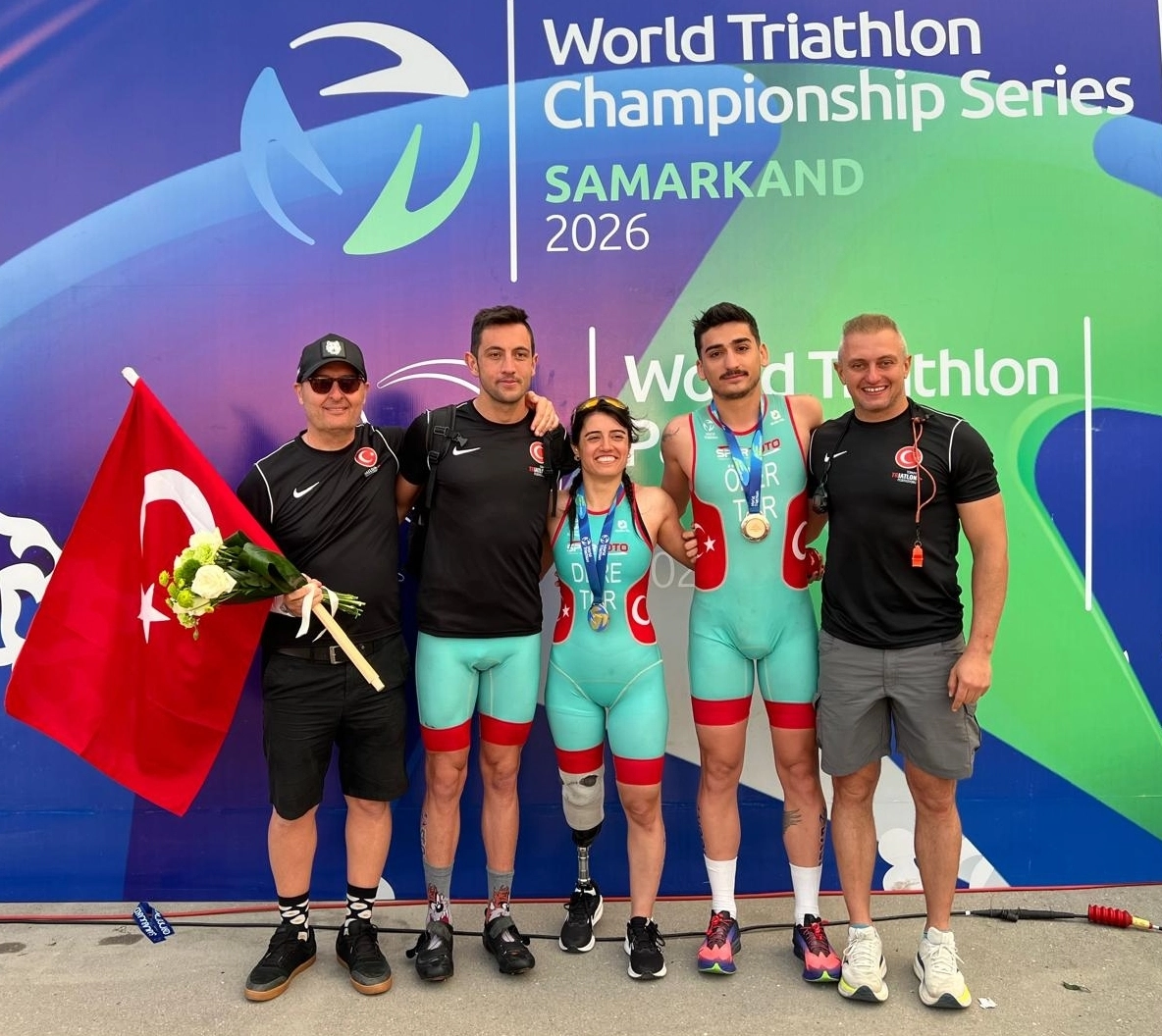 Kübra Dere ve Uğurcan Özer, Paratriatlon Dünya Kupası'nın Semerkant ayağında şampiyon oldu