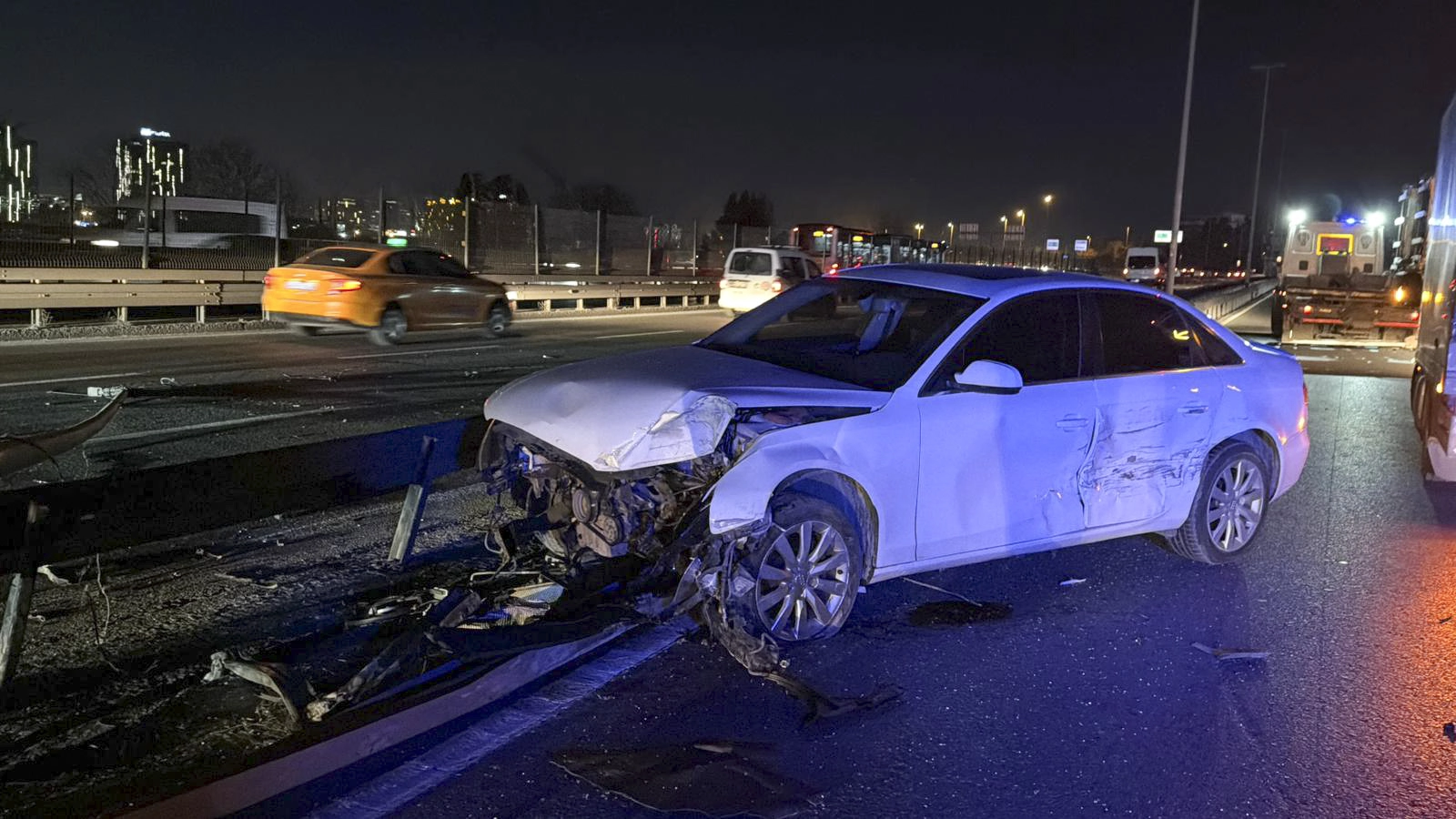 D-100 kara yolu Topkapı istikametinde seyir halinde olan 34 TK 8258 plakalı otomobil ile 34 JV 9448 plakalı otomobil, Küçükçekmece mevkisinde yan yol ayrımında çarpıştı.