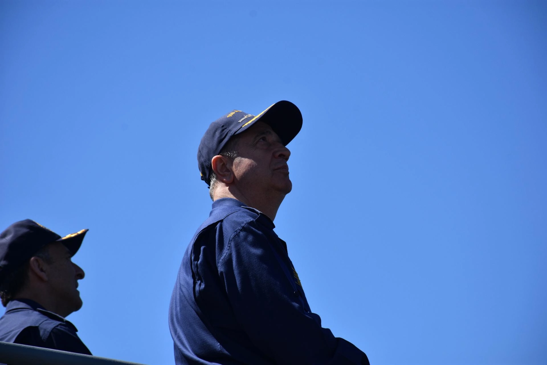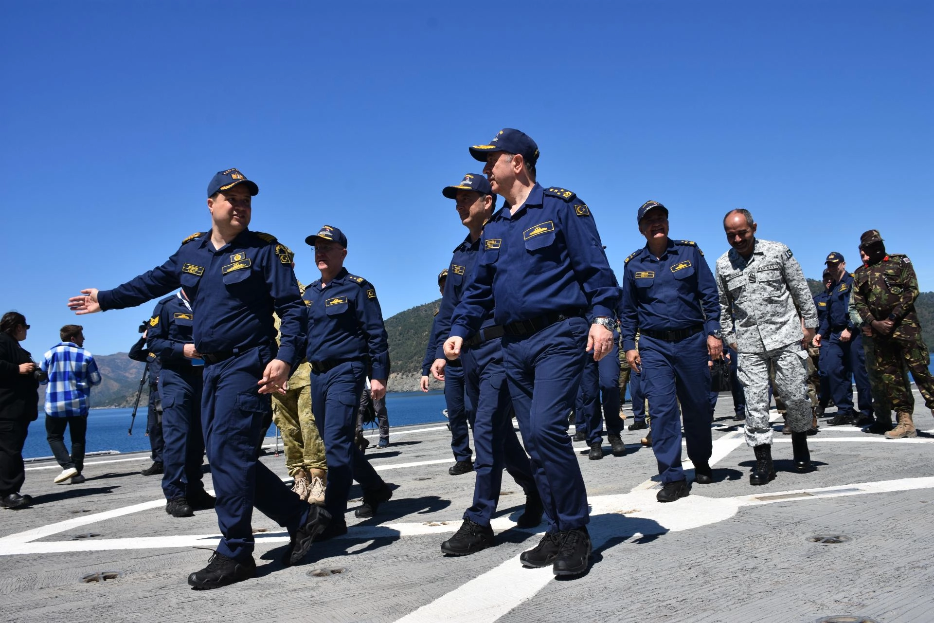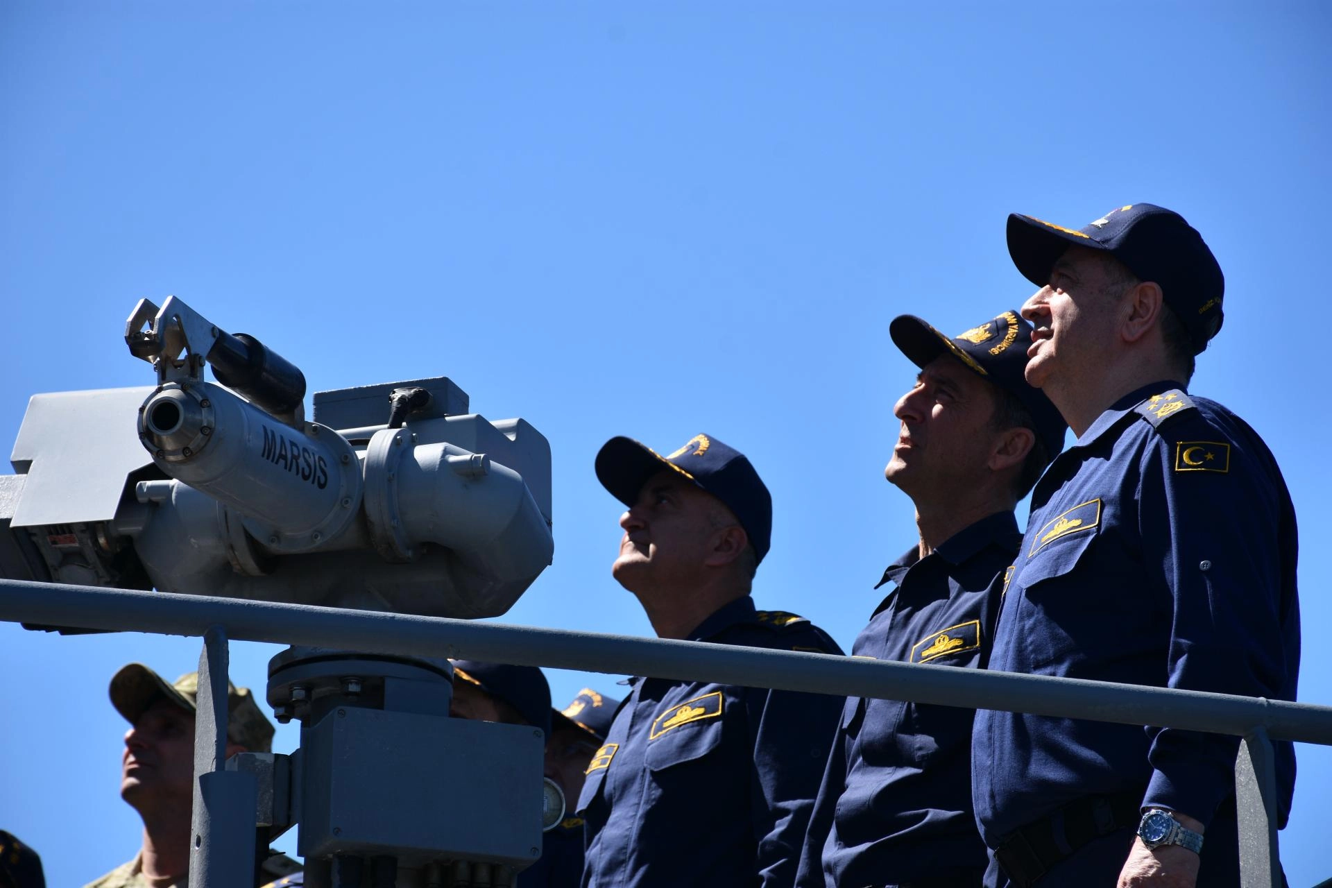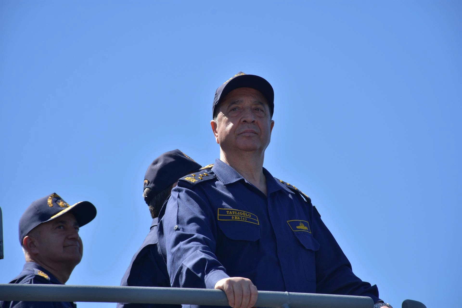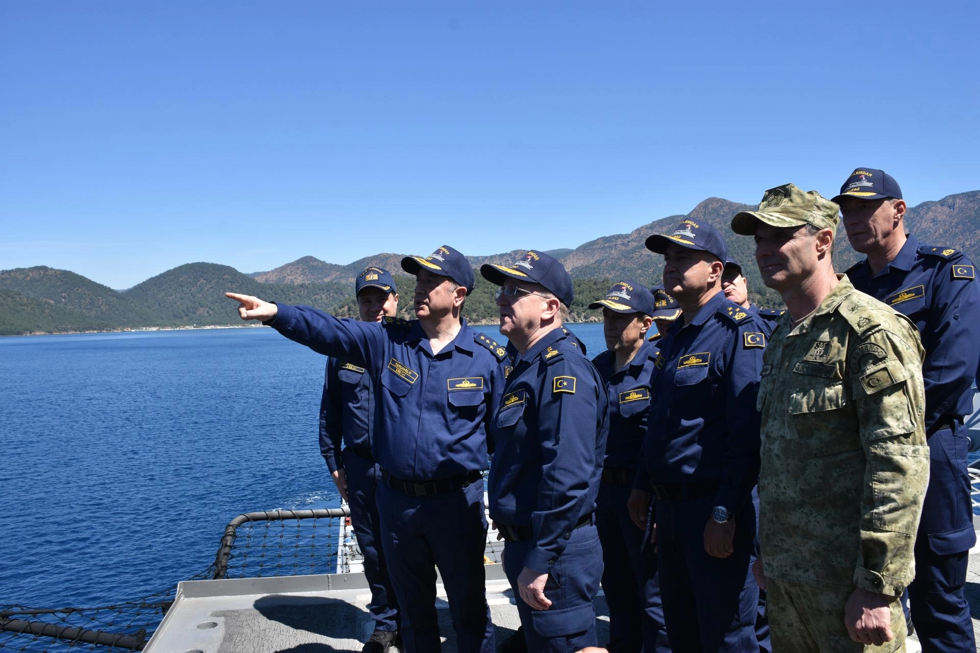 Tatbikata katılan uçak, TCG Alemdar gemisinde bulunan komutanları selamladı.
