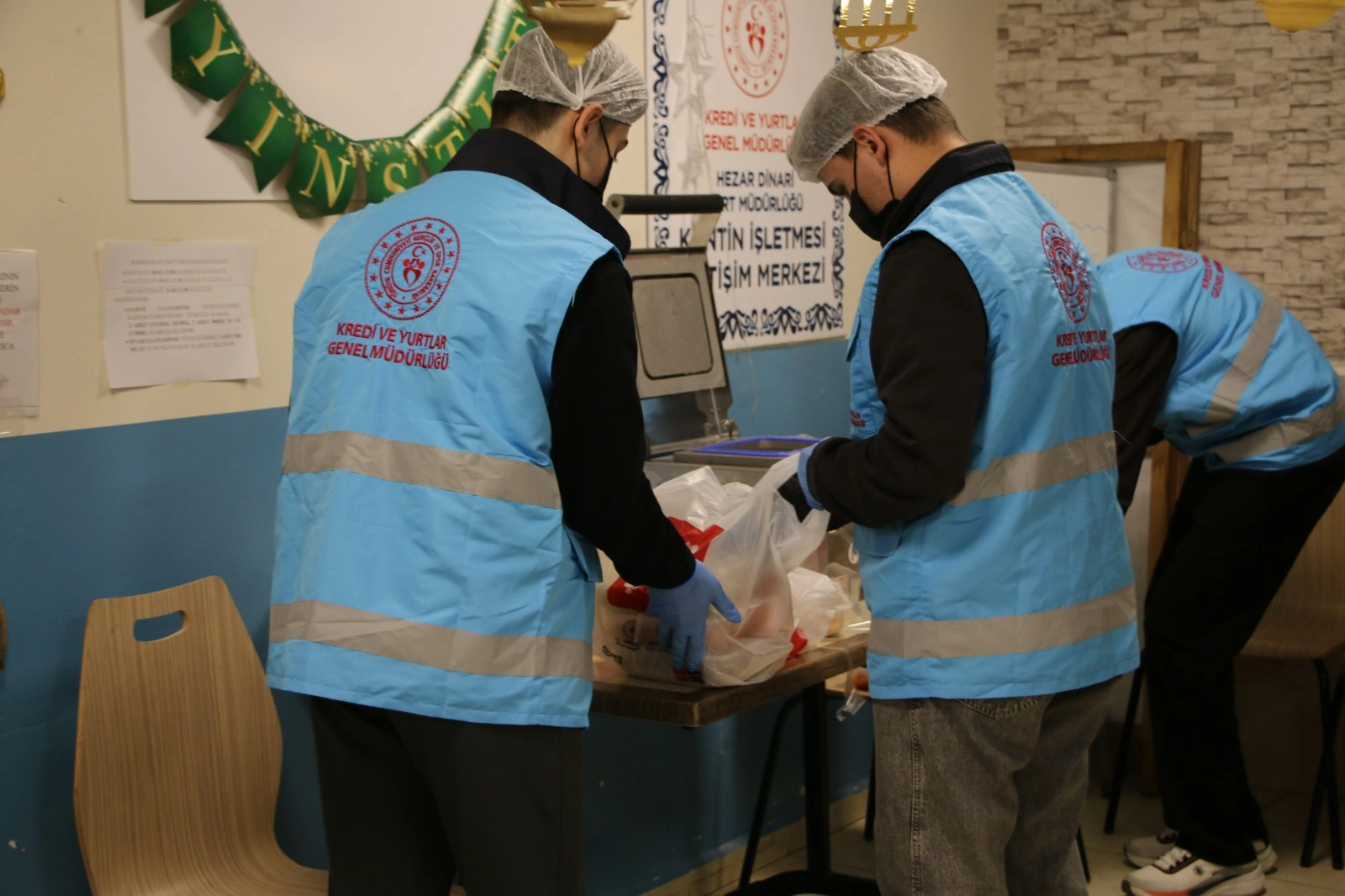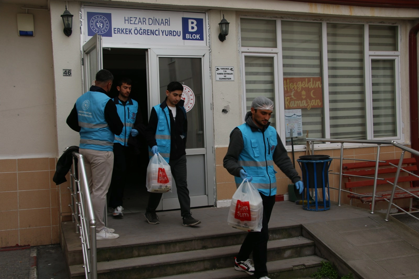 Gönüllülük esasıyla yürütülen çalışmada öğrenciler, yurt mutfaklarında hazırlanan sıcak yemekleri paketleyerek ihtiyaç sahiplerinin iftar sofralarına ulaştırıyor.