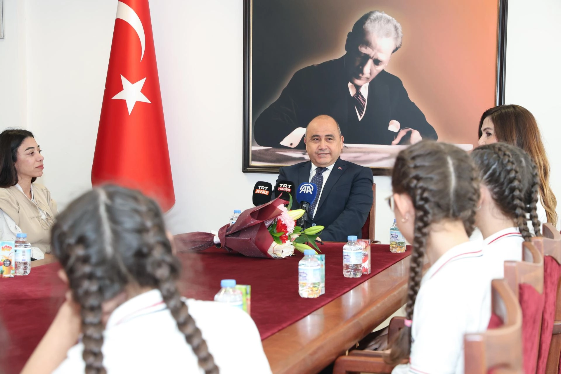 Başçeri, burada yaptığı konuşmada, 23 Nisan Ulusal Egemenlik ve Çocuk Bayramı dolayısıyla öğrencileri ağırlamaktan büyük mutluluk duyduğunu aktardı.