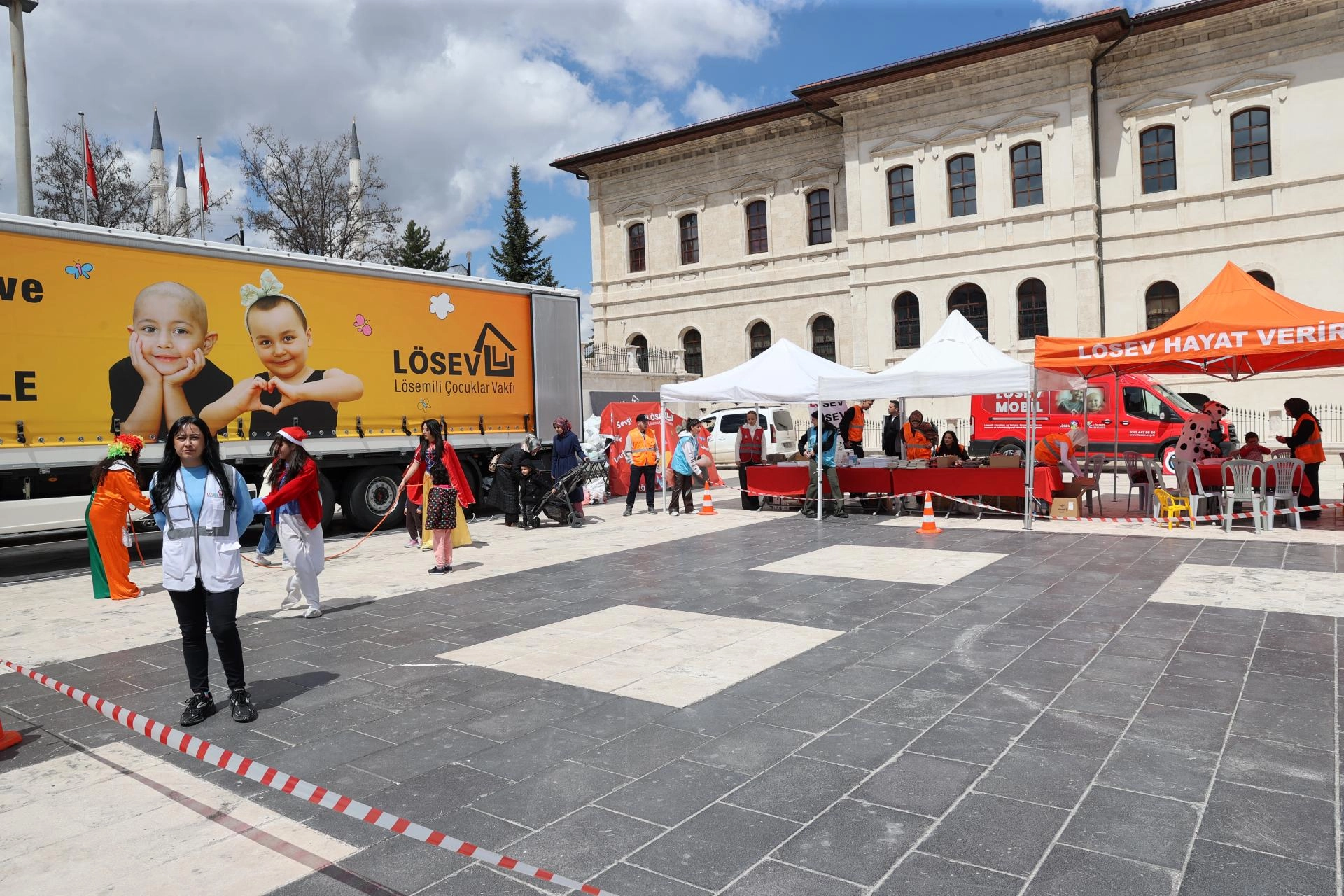 SİVAS (AA) - Lösemili Çocuklar Sağlık ve Eğitim Vakfınca (LÖSEV) hayata geçirilen "İyilikler Tırı", Sivas'taki kanser hastası çocuklar ile ailelerine yardım malzemesi ulaştırdı.