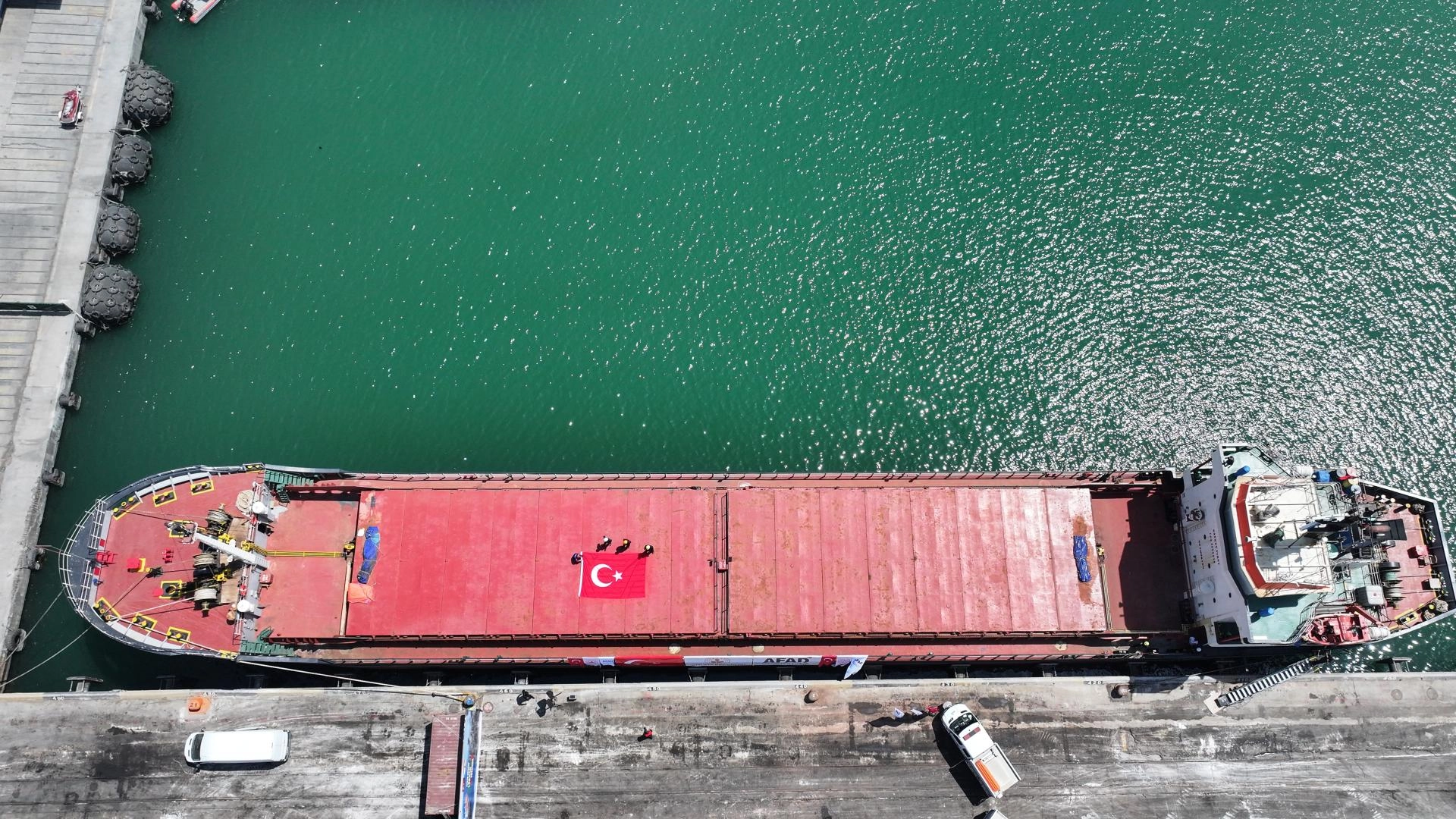 Geminin hazırlanmasında ve gönderilmesinde emeği geçenlere teşekkür ederek, "İnşallah bu gemi sağlıkla hedefine varacaktır ve bir nebze olsun oradaki kardeşlerimizin dertlerine deva, ihtiyaçlarını giderme hususunda katkı sunacaktır." diye konuştu.