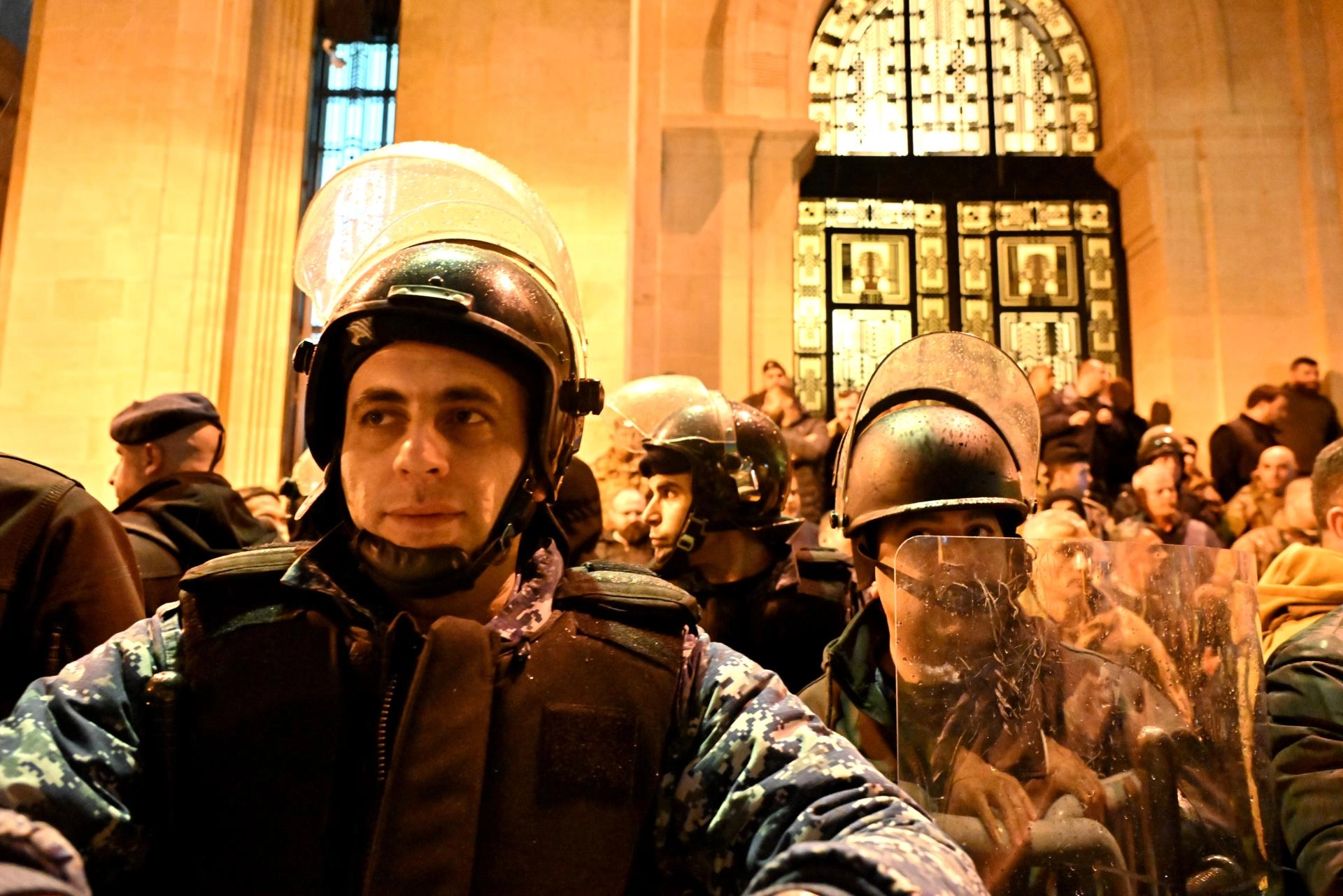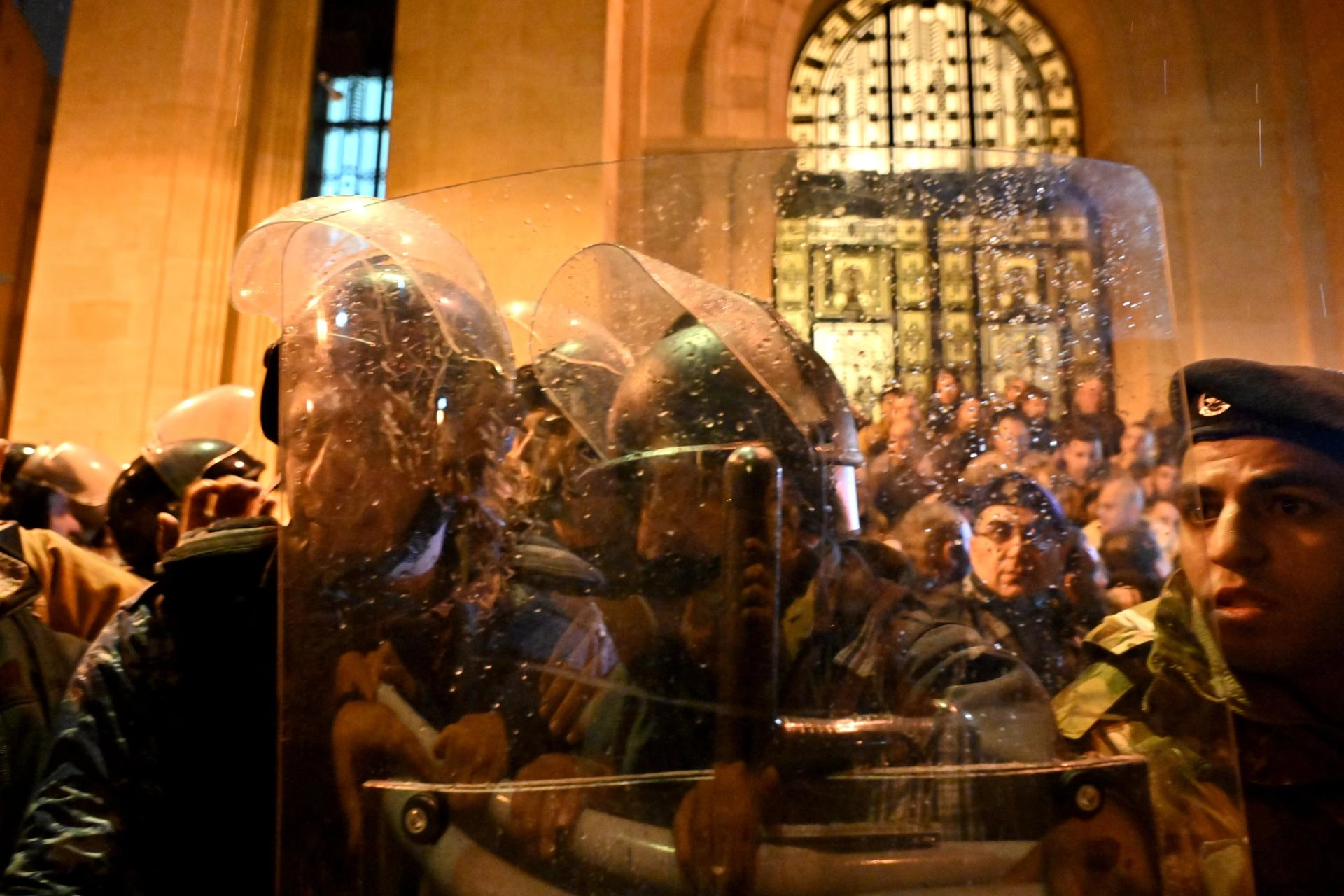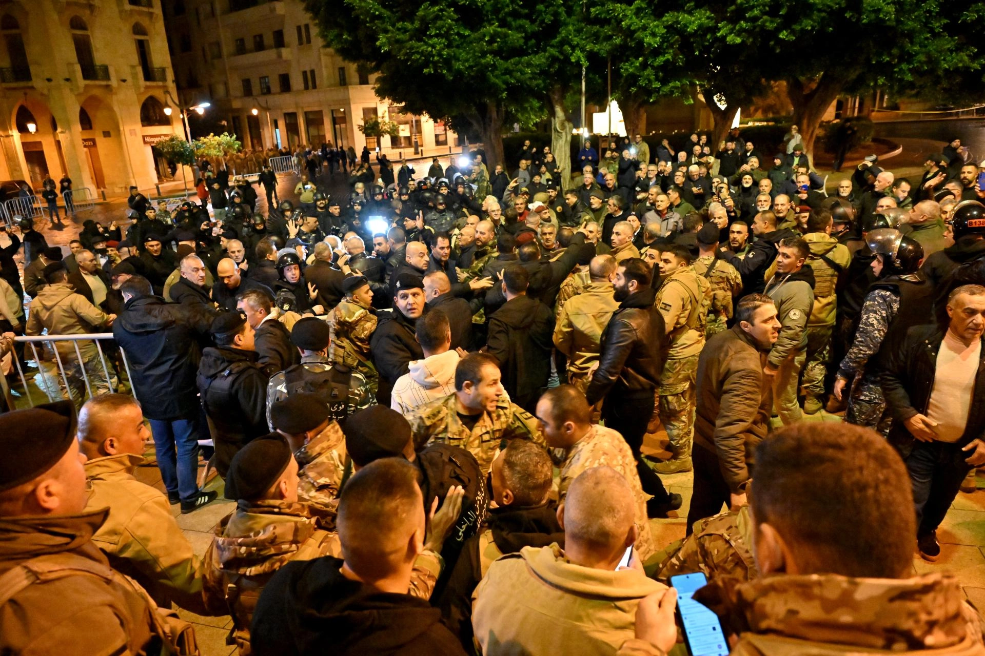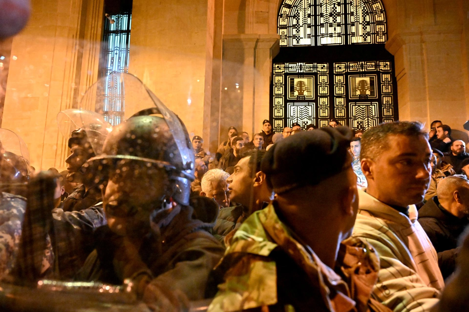 Lübnan'da maaşlarının iyileştirilmesini isteyen emekli askerler, Meclis binasına girmeye çalıştı