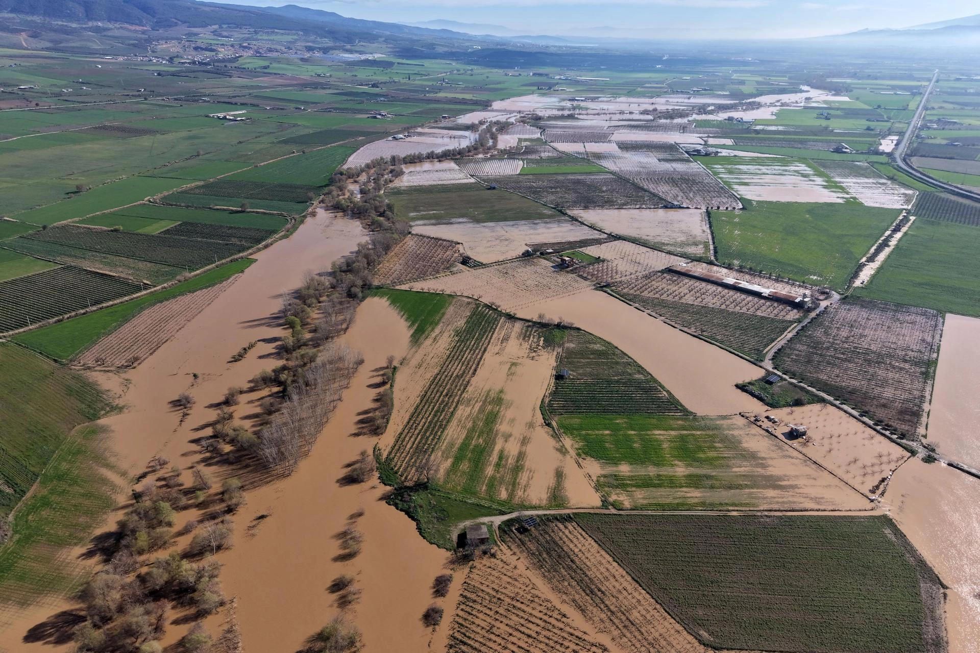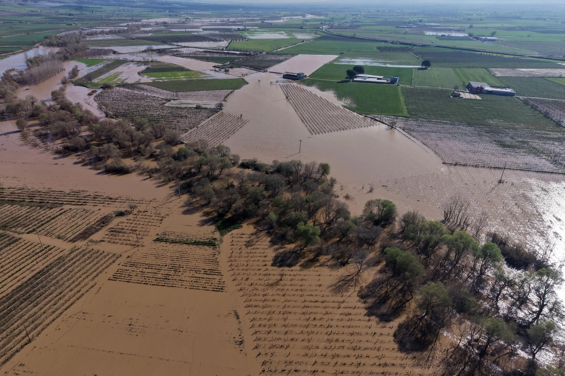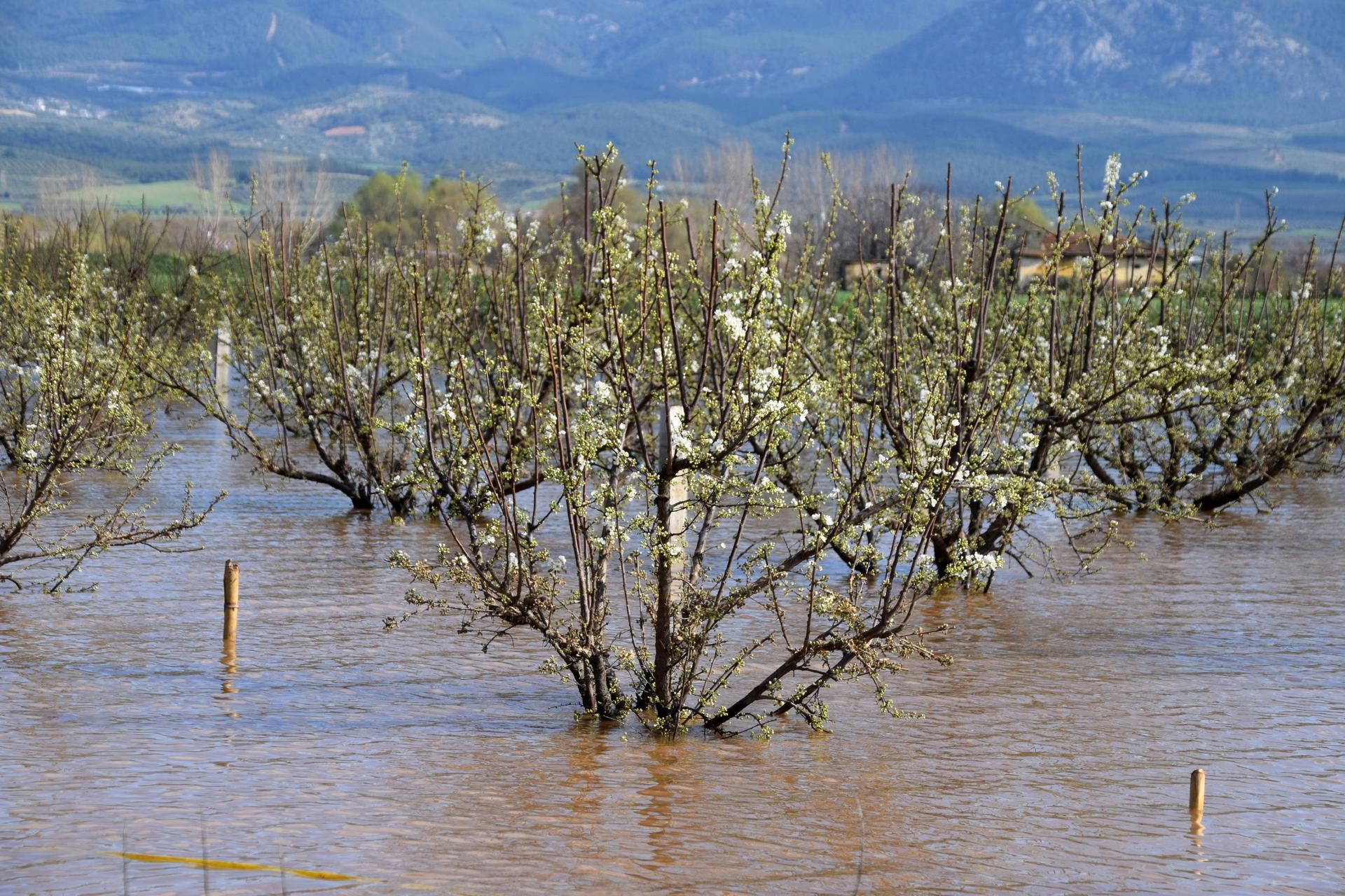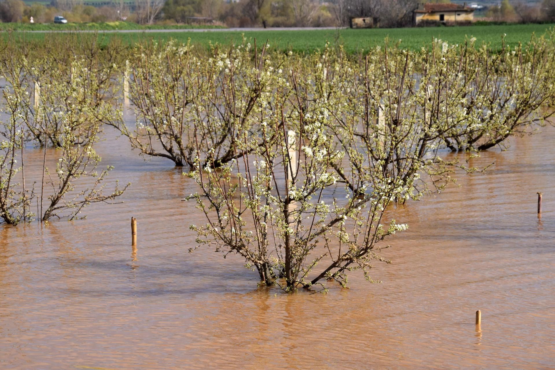 Su altında kalan zeytin bahçeleri, üzüm bağları, hububat ve kışlık sebze ekili arazilerde zarar oluştu.