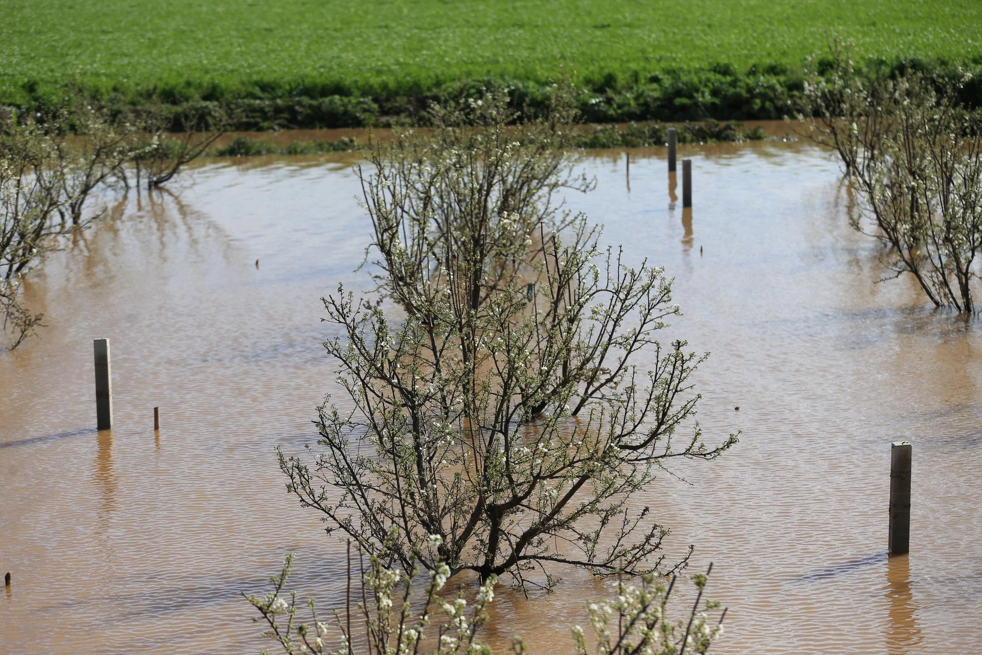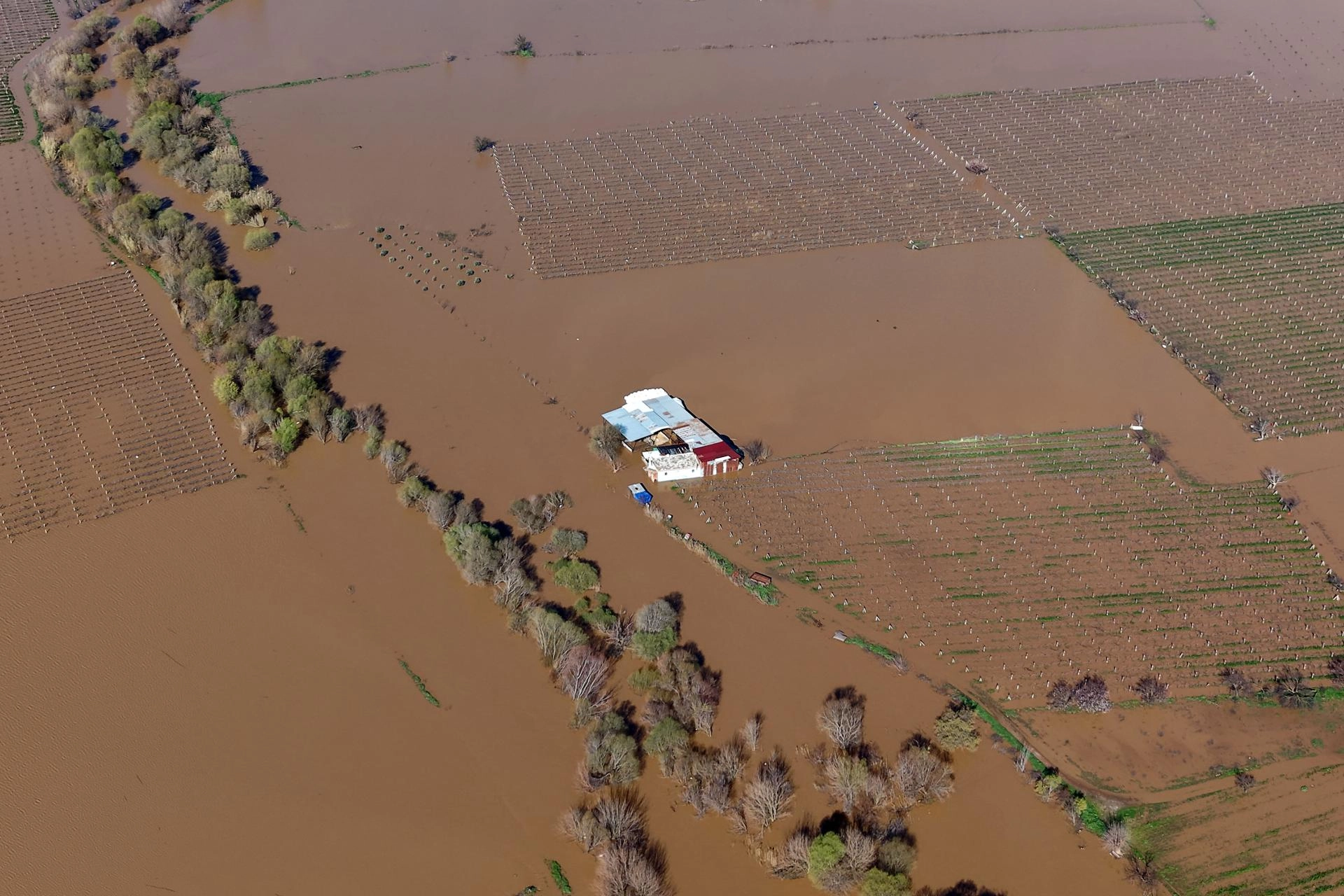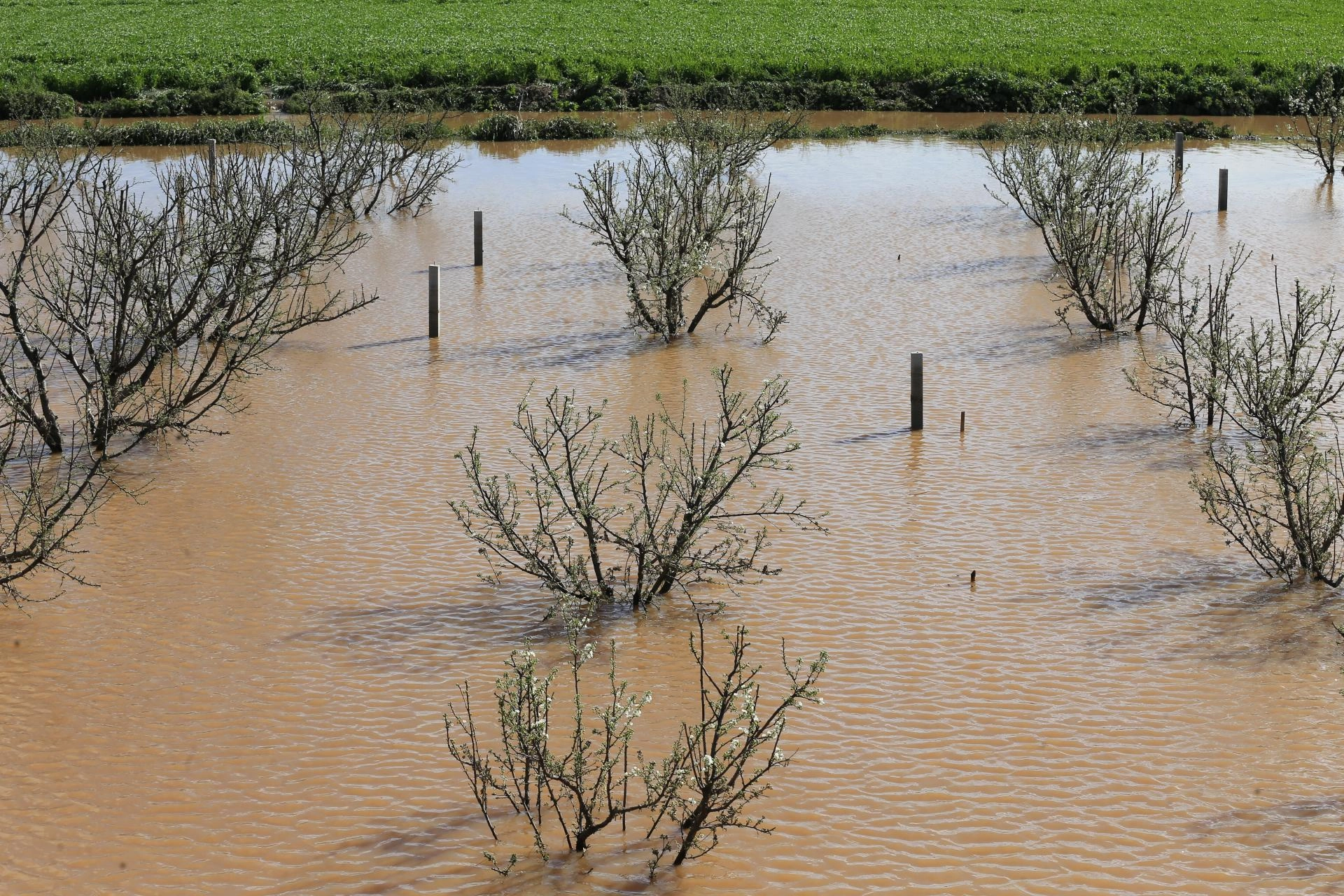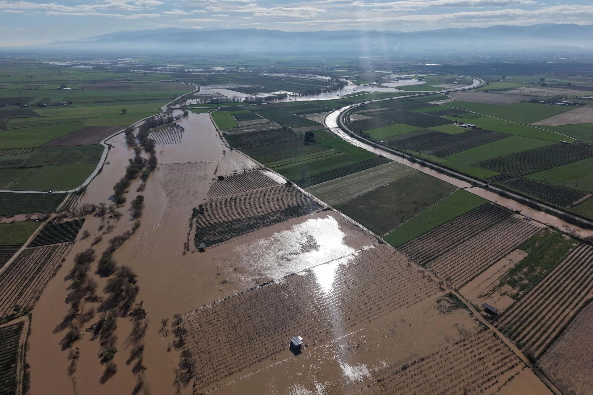 Su altında kalan zeytin bahçeleri, üzüm bağları, hububat ve kışlık sebze ekili arazilerde zarar oluştu.