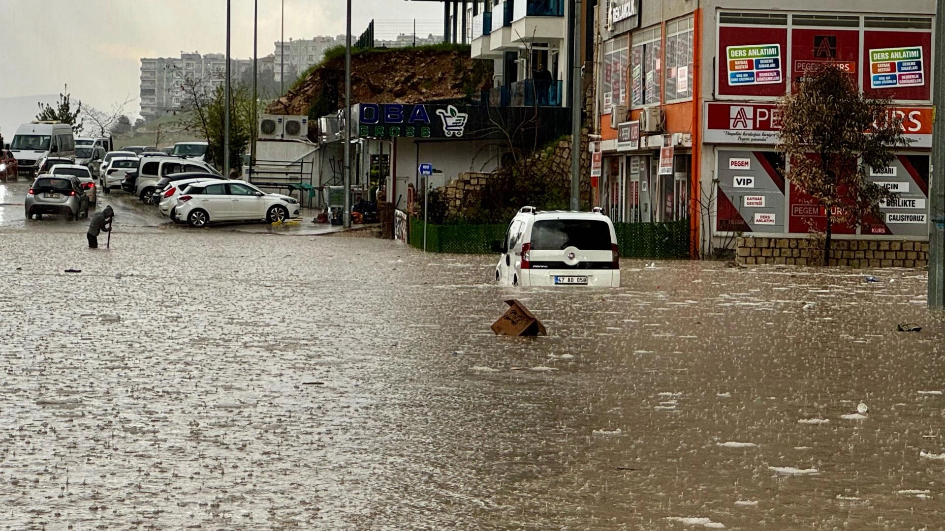 MARDİN (AA) - Mardin'in Artuklu ve Kızıltepe ilçelerinde etkili olan sağanak yaşamı olumsuz etkiledi.