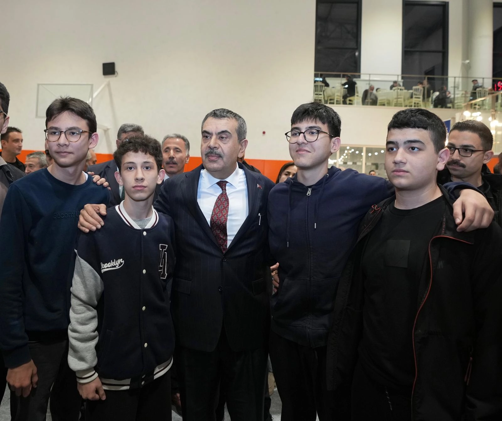Yusuf Tekin, öğrenci, öğretmen ve velileriyle hatıra fotoğrafı çektirdi.