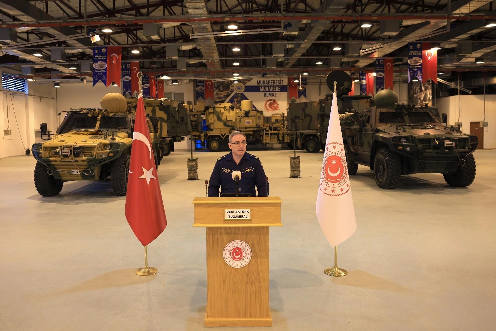 MSB Basın ve Halkla İlişkiler Müşaviri ve Bakanlık Sözcüsü Tuğamiral Zeki Aktürk, Muhabere Elektronik Bilgi Sistemler (MEBS) Okulu ve Eğitim Merkezi Komutanlığı'nda düzenlenen, haftalık basın bilgilendirme toplantısında konuştu.
