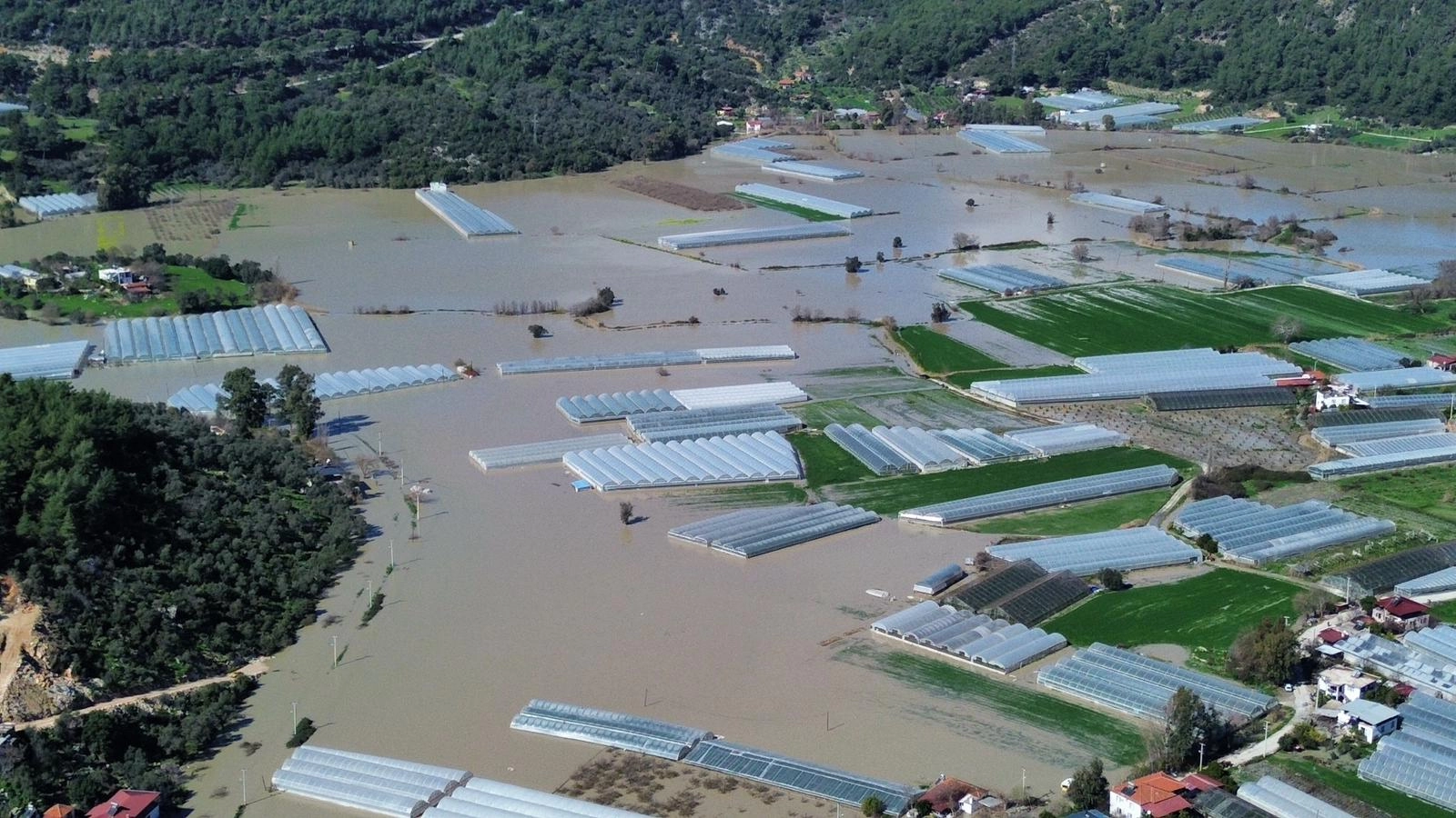 Muğla ile Antalya'da su basan seralar havadan görüntülendi