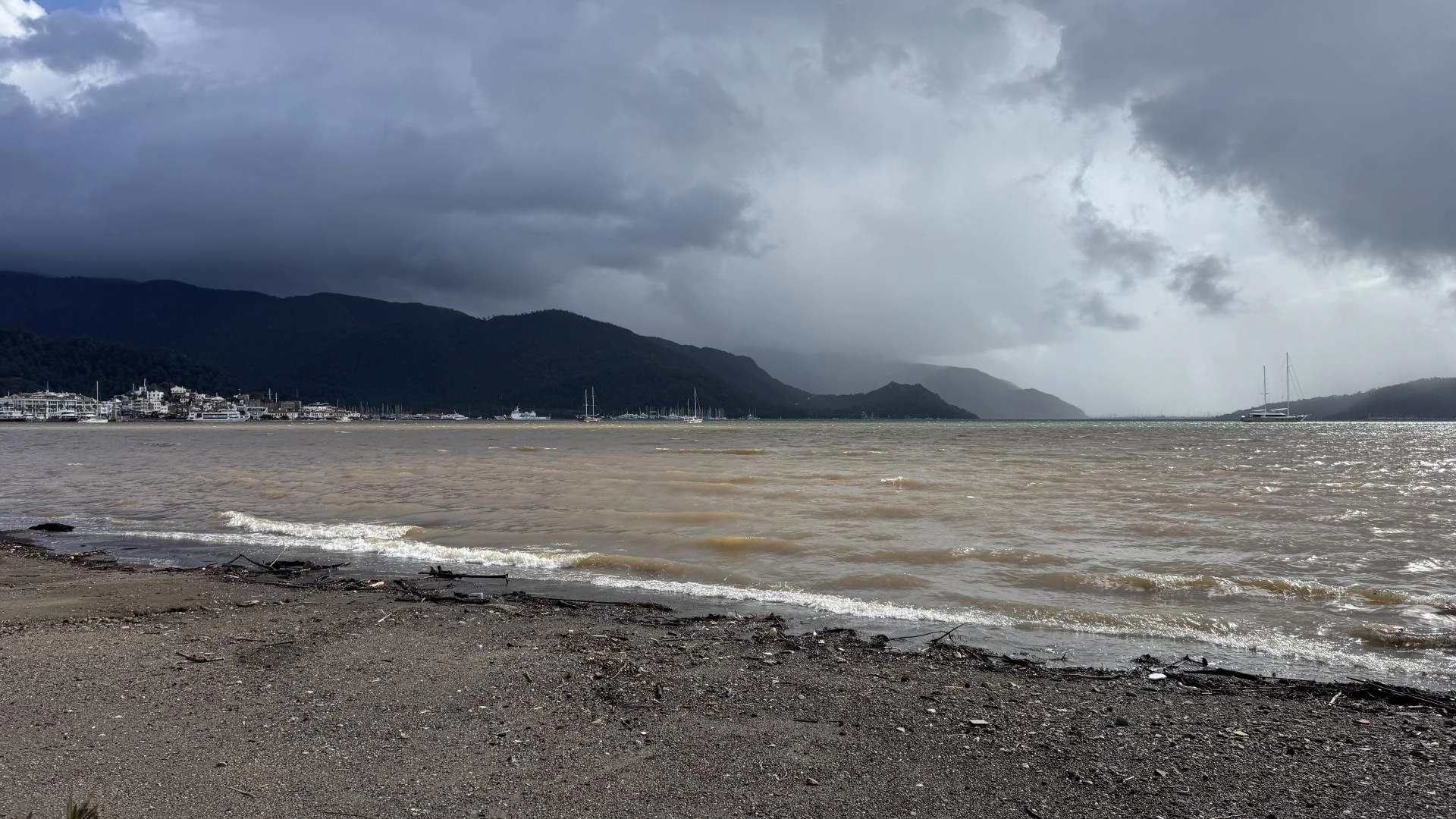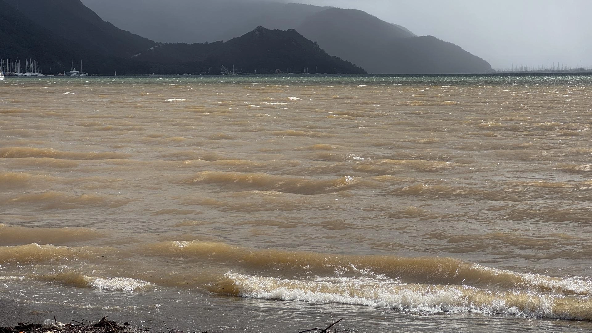 Yüksek kesimlerden gelen çamurlu su sebebiyle Uzunyalı ve İçmeler sahilinde denizin rengi kıyı bölgelerde kahverengiye döndü.