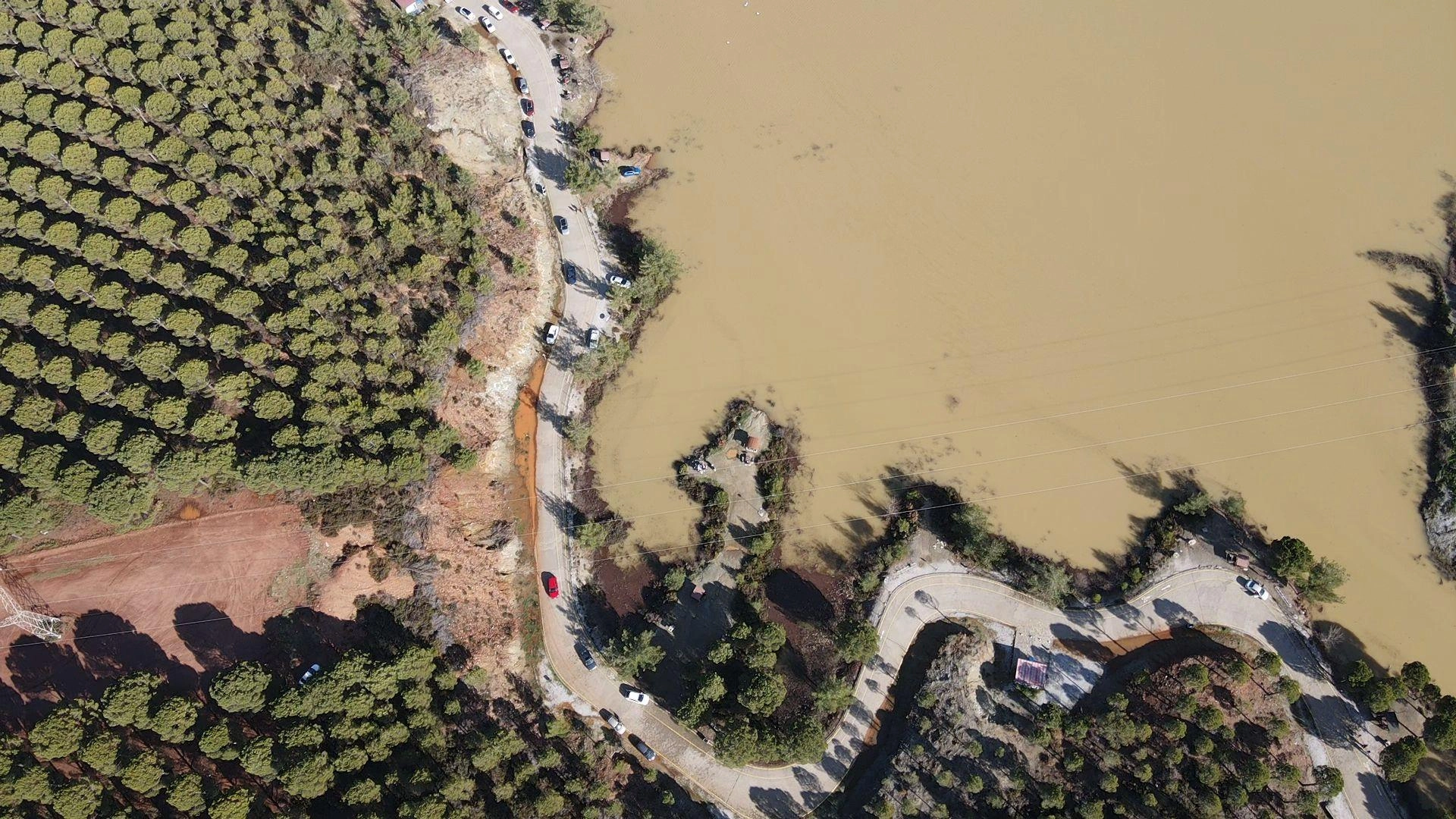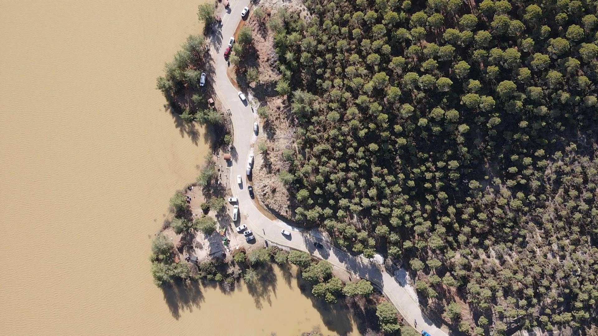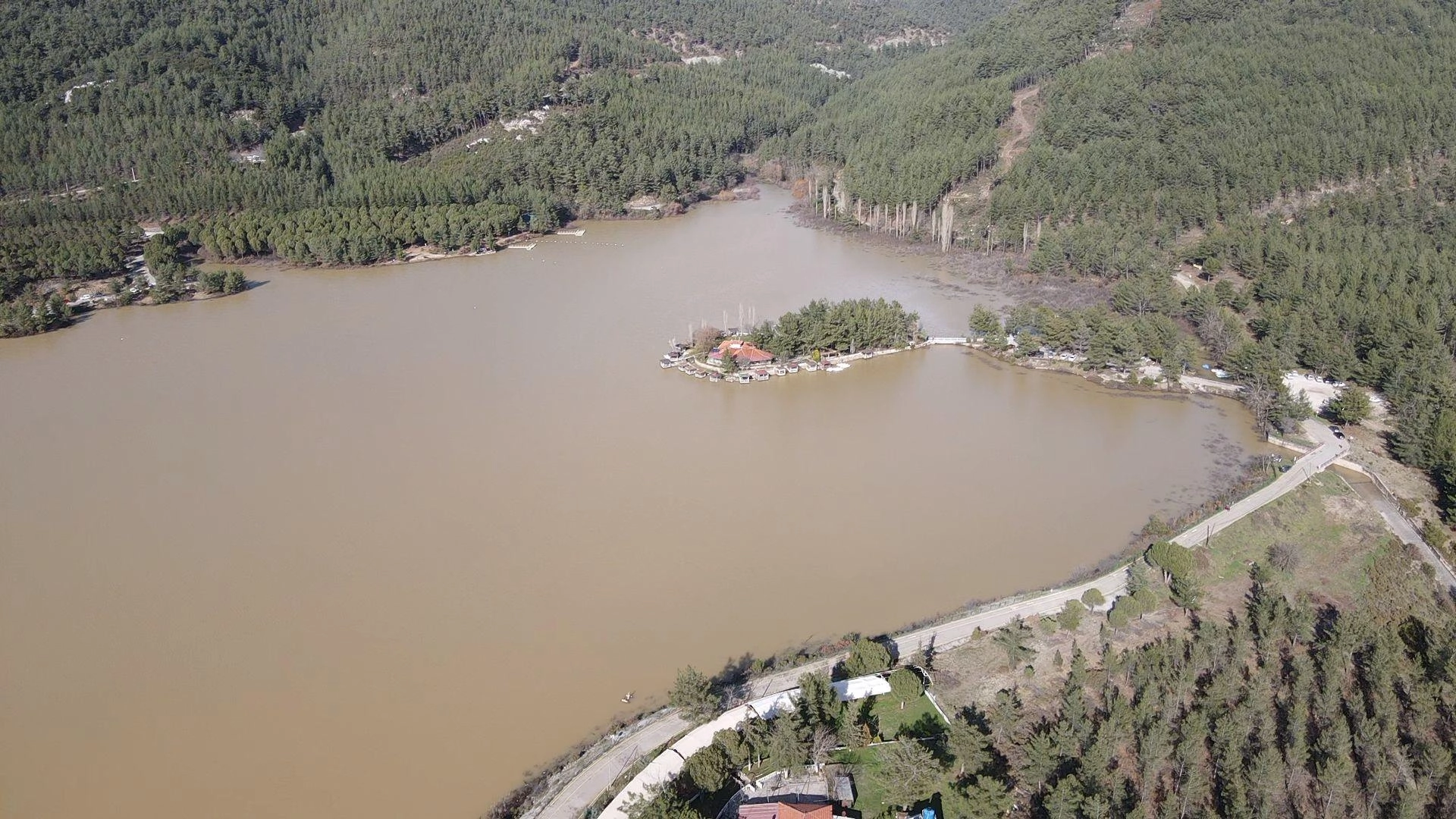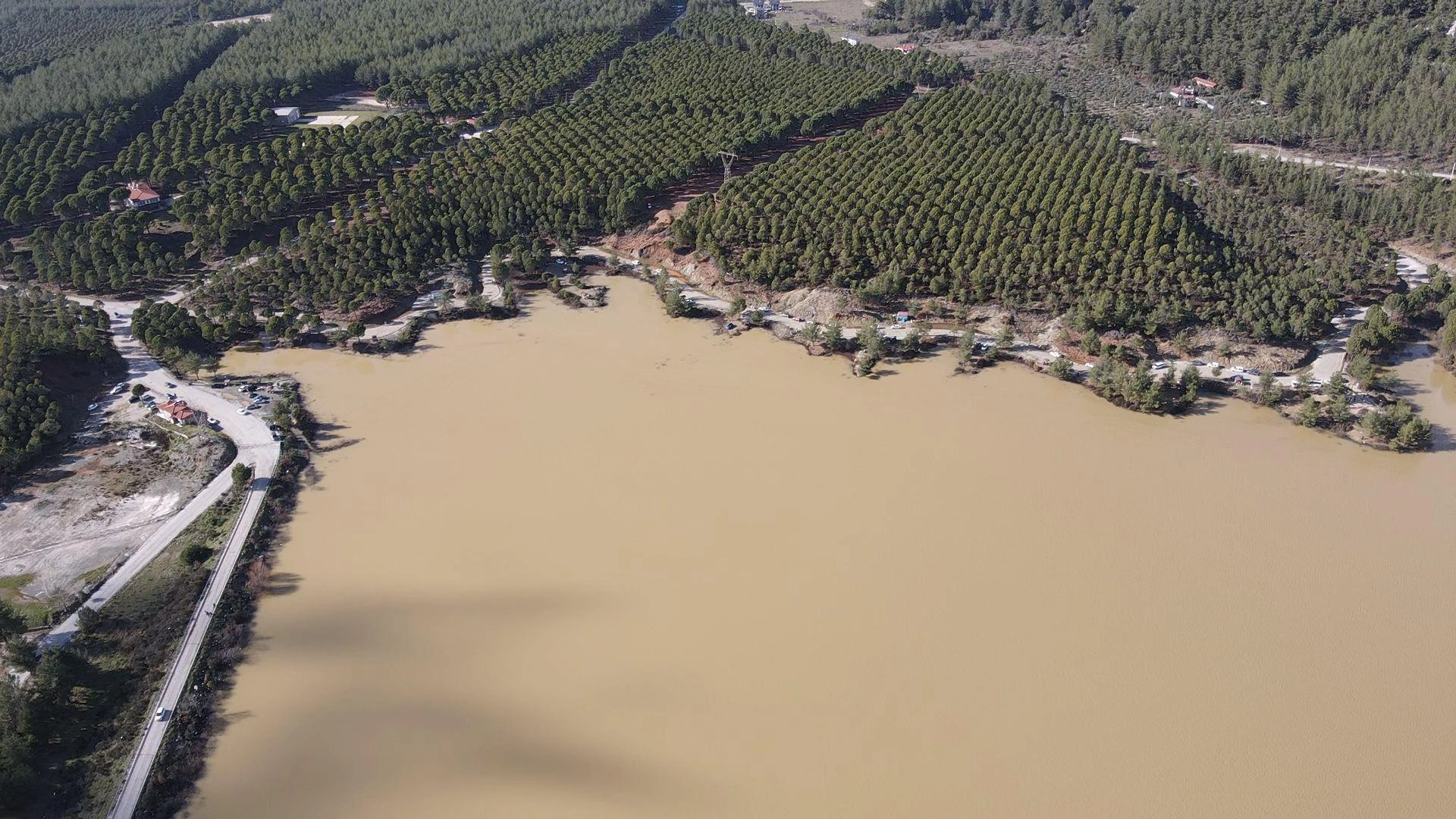 Ula Göleti'nin suyla dolması AA ekibince dronla görüntülendi.