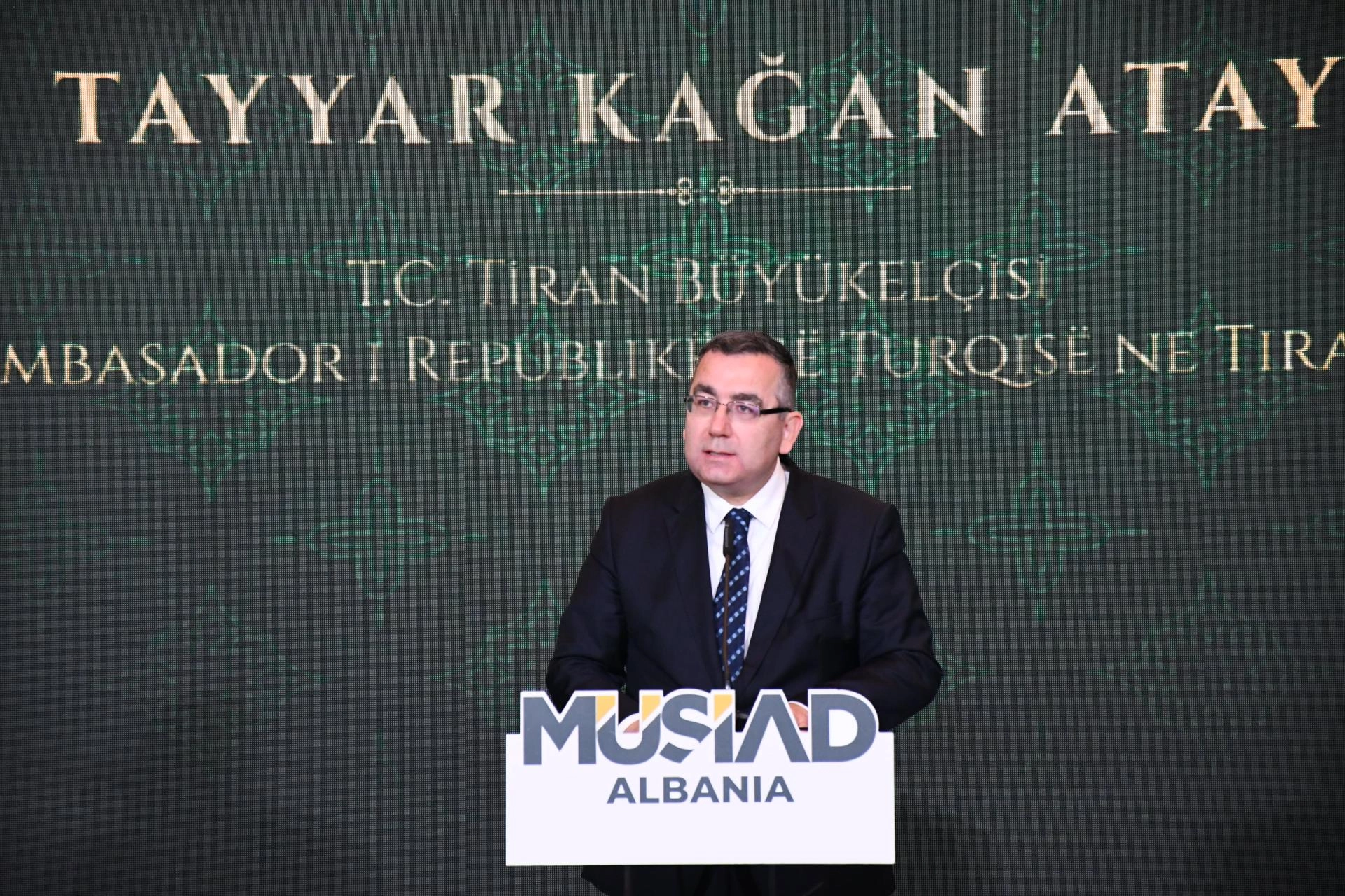 Türkiye'nin Tiran Büyükelçisi Tayyar Kağan Atay, burada yaptığı konuşmada, "ramazanın, birbirine özel bağlarla bağlı olan Türkiye ve Arnavutluk'a ve tüm Müslüman dünyasına hayır getirmesini" temenni etti.
