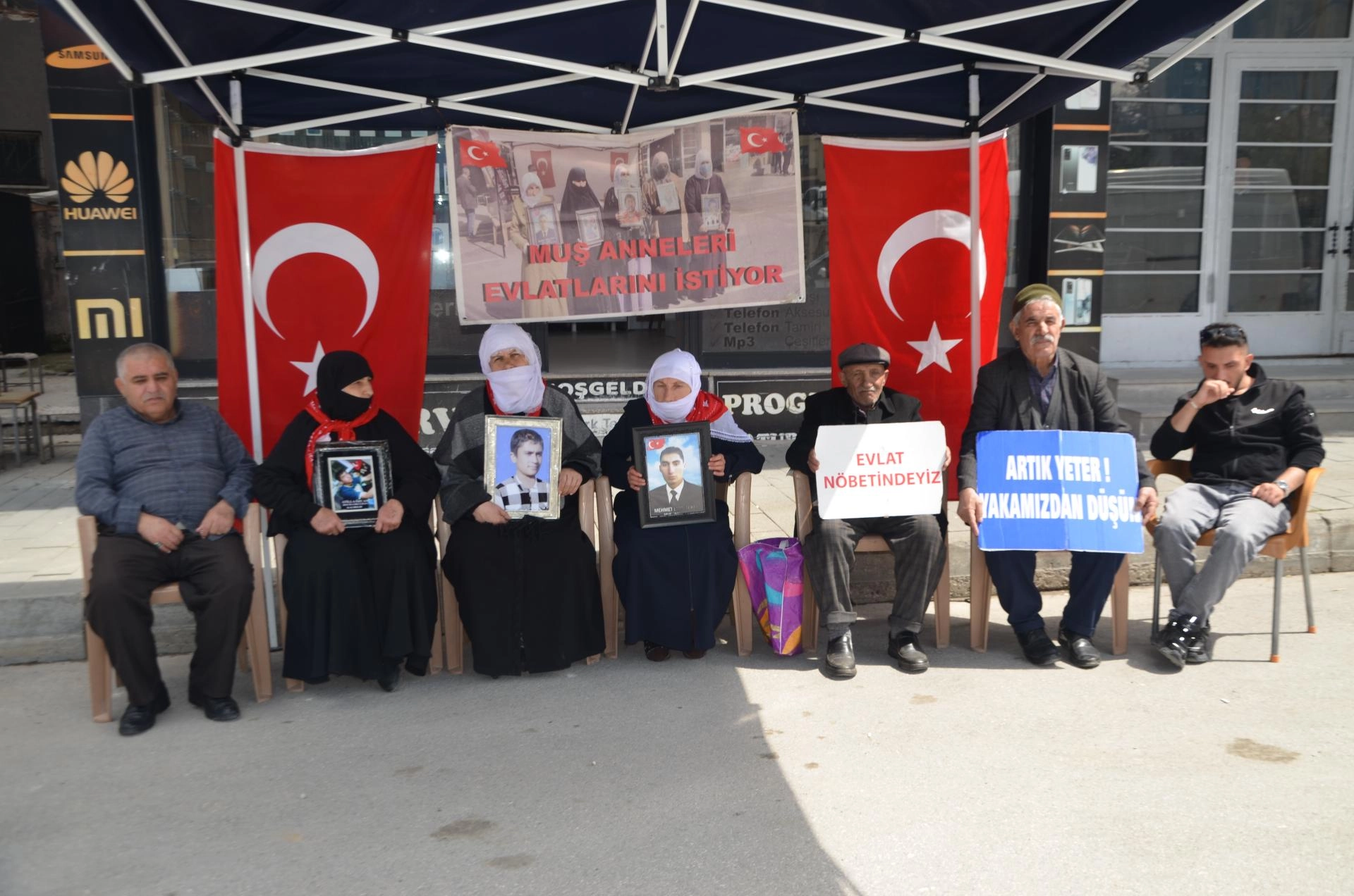 MUŞ (AA) - Muş'ta çocukları terör örgütü PKK tarafından kaçırılan aileler, DEM Parti İl Başkanlığı binası önündeki eylemlerine devam etti.