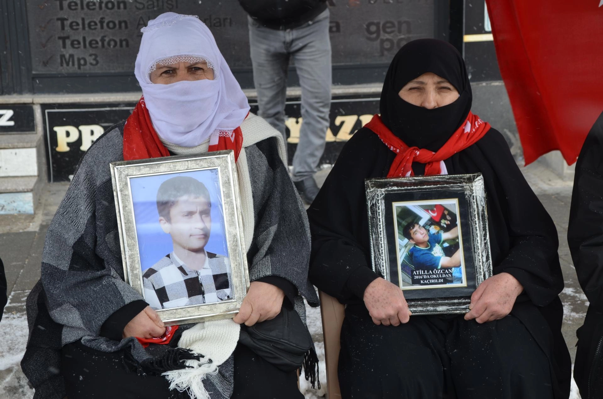 Anne Şahinaz Özcan ise "Yıllardır evlat hasreti çekiyorum. Bu karda, kışta gelip burada nöbet tutuyoruz. Çocuklarımızın teslim olmasını istiyoruz. Yıllardır süren hasretin son bulmasını bekliyoruz." ifadelerini kullandı.