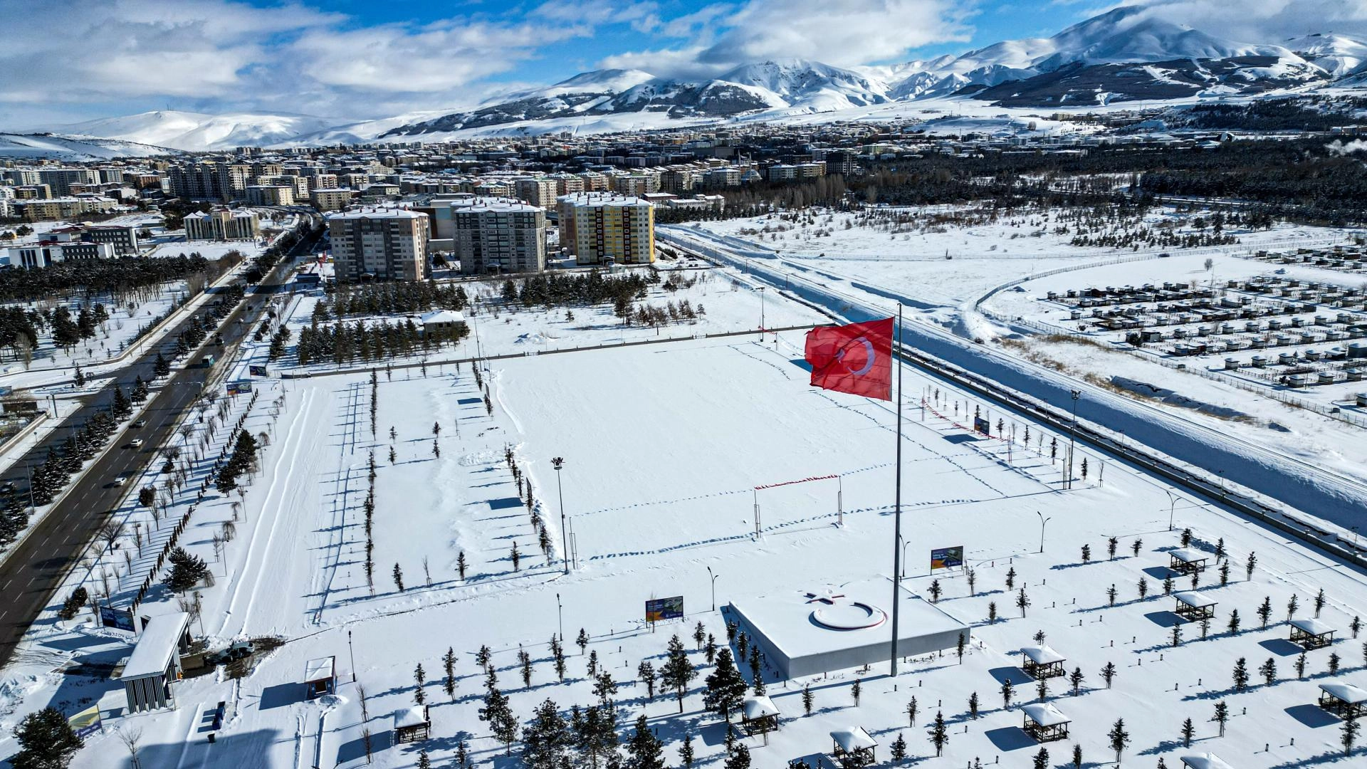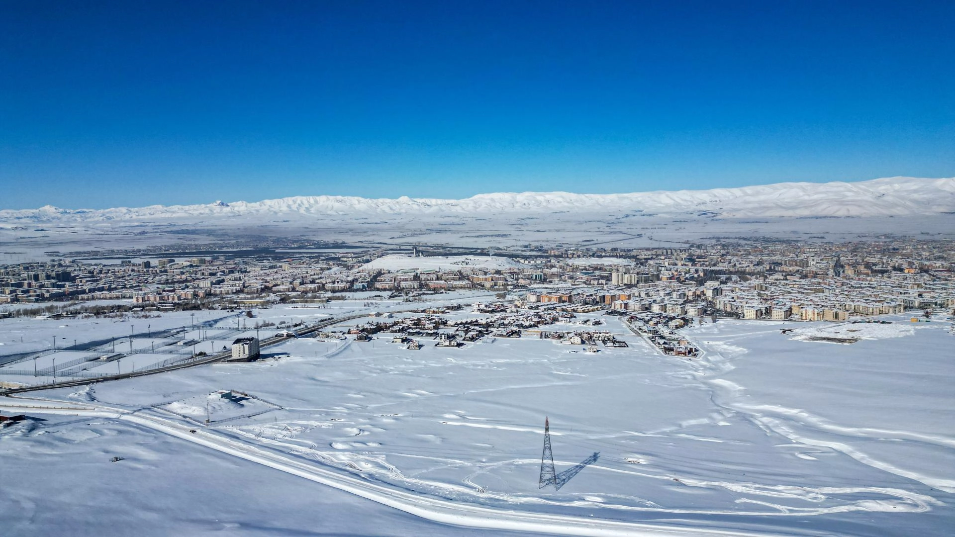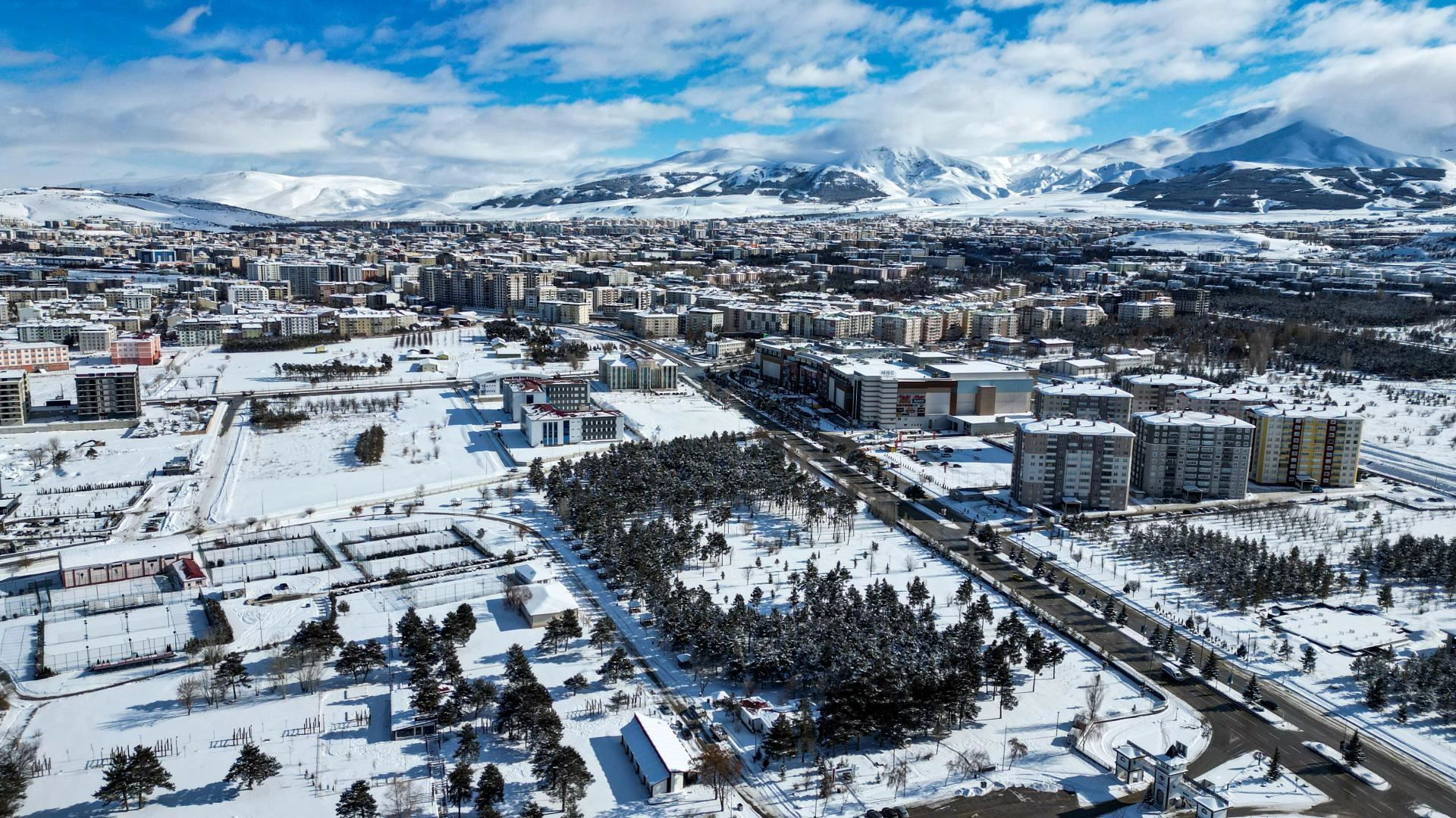 Sisle bütünleşen ve beyaza bürünen ormanlık alanlar ile kent merkezi dronla görüntülendi.