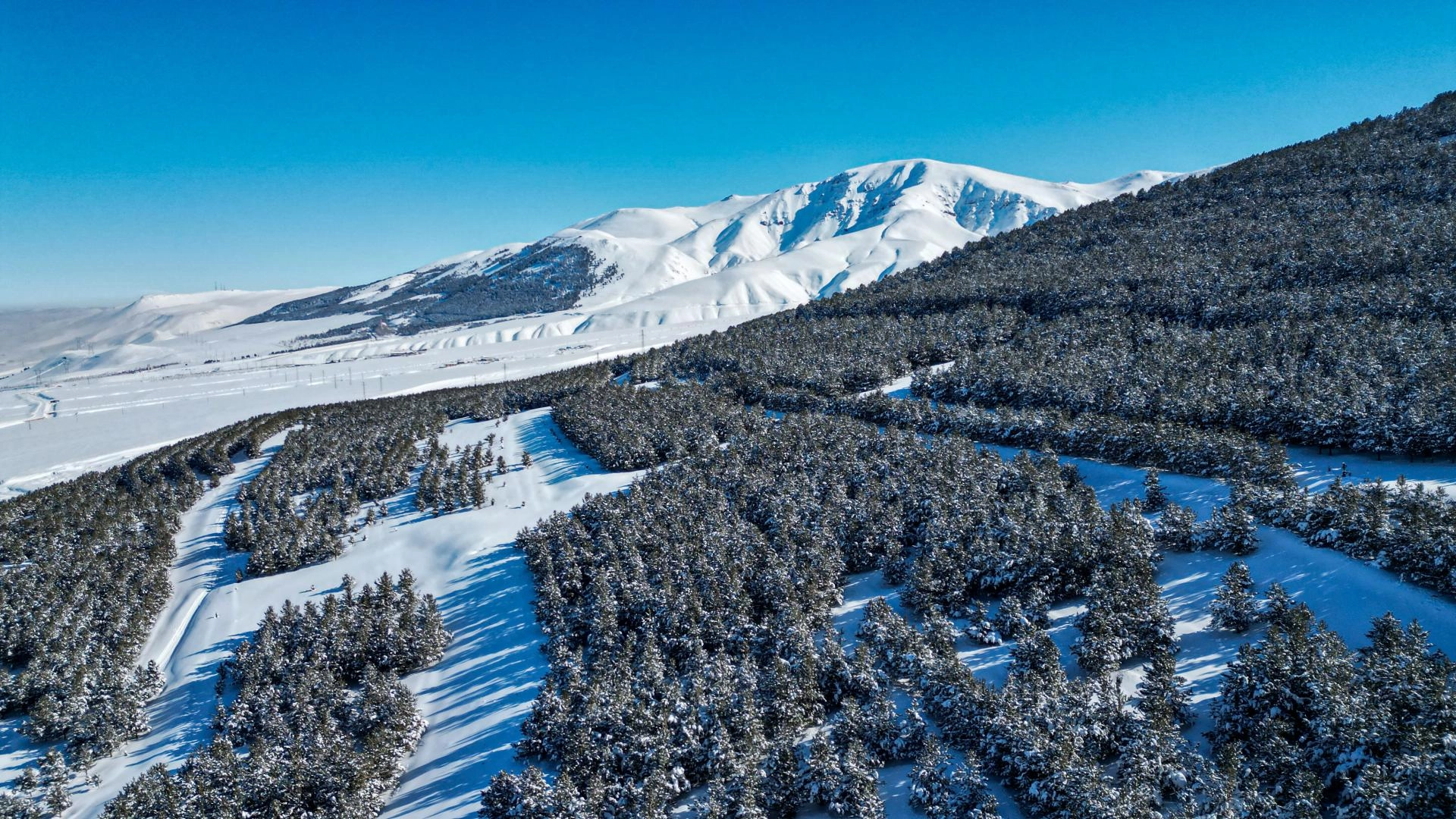 ERZURUM (AA) - Erzurum'da kar yağışının ardından beyaza bürünen Palandöken Dağı'ndaki ormanlık alanlar dronla görüntülendi.