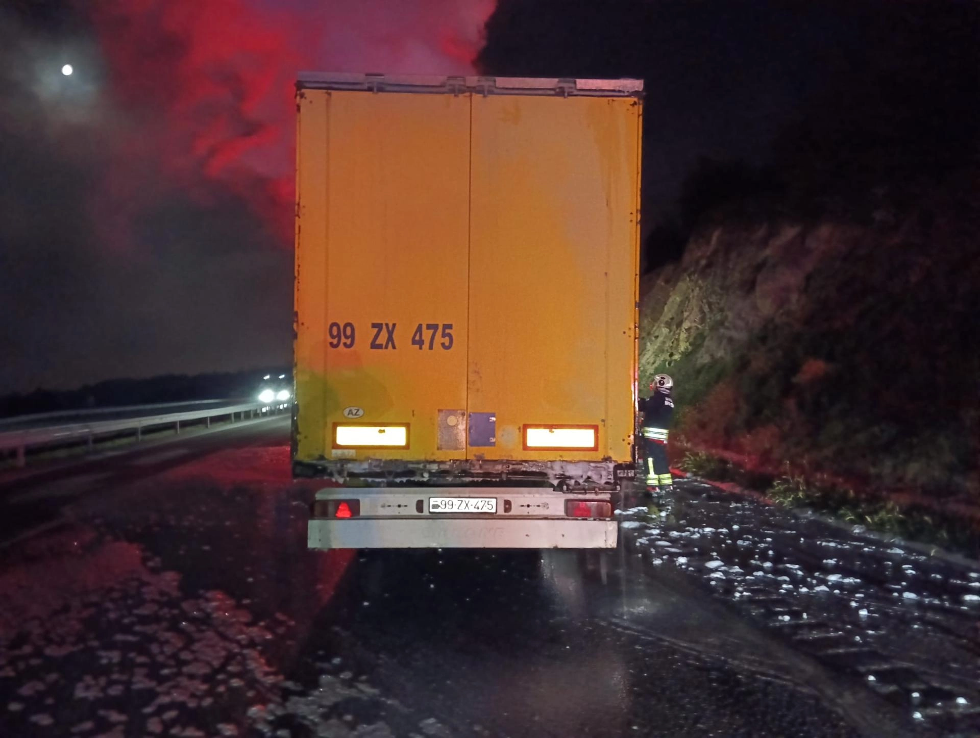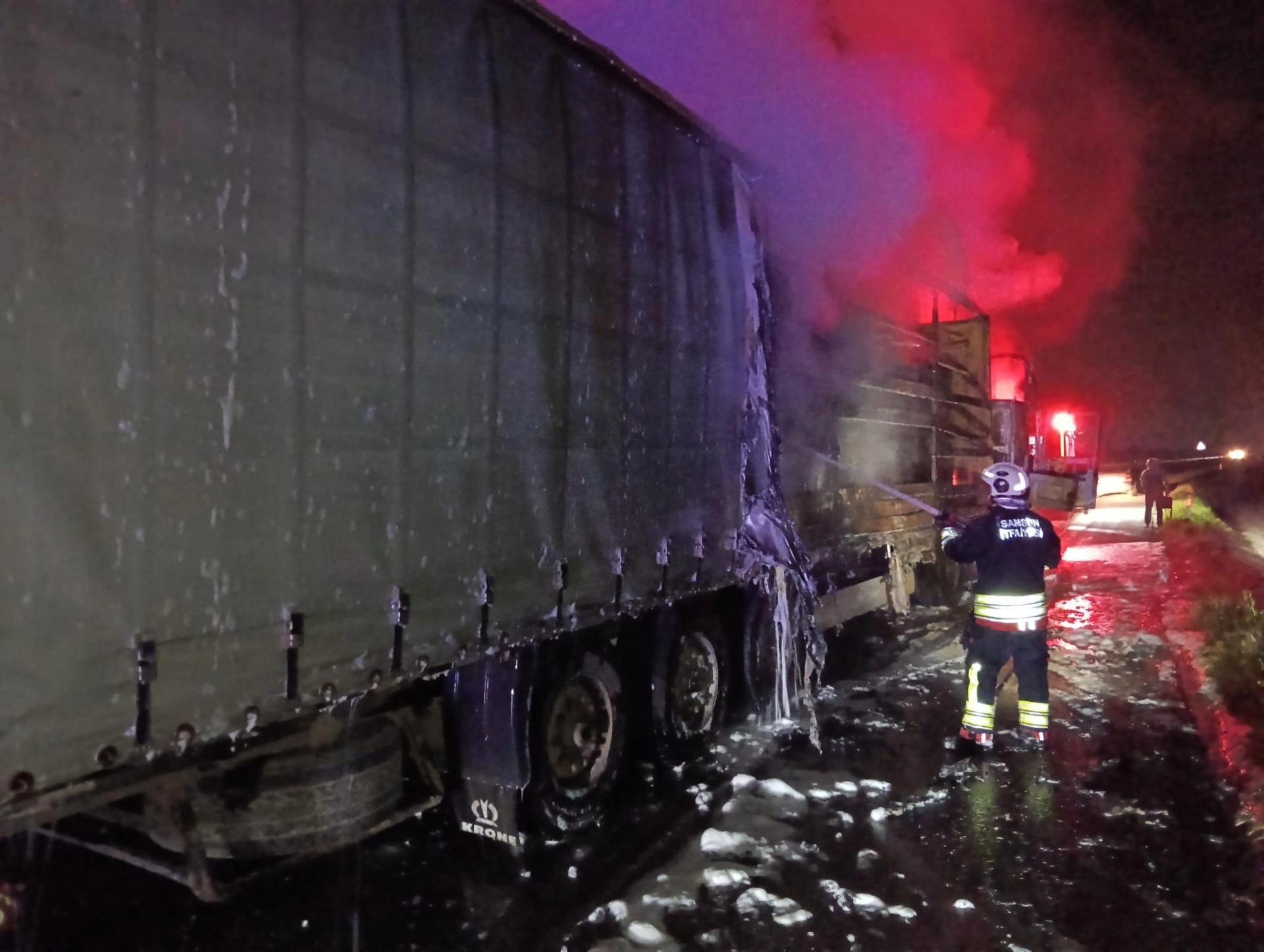 İtfaiye ekiplerinin müdahalesiyle söndürülen yangında tır kullanılamaz hale geldi.