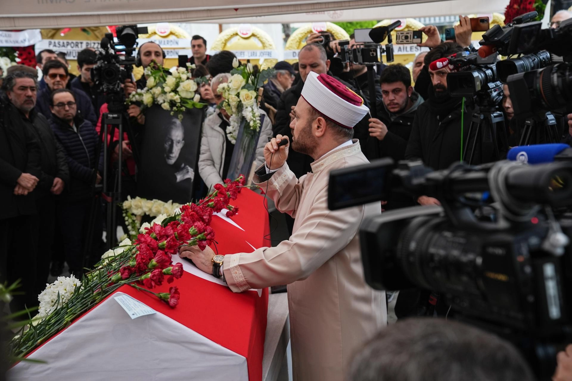 Tören öncesinde basın mensuplarına açıklama yapan Kültür ve Turizm Bakan Yardımcısı Batuhan Mumcu, başsağlığı dileklerini ileterek, "Şöyle bir arkaya dönüp bakıyorum, kimler geldi, kimler geçti. Yüzyıllık bir çınarı kaybettik. Hem sanatıyla hem öğretileriyle hayatımıza çok şey katmıştı. Ailesine ve tüm sevenlerine başsağlığı diliyorum. Yaklaşık yüzyıllık ömrüne çok güzel şeyler sığdırdı. Yeri geldi ağlattı, yeri geldi düşündürdü. Sanat adına çok büyük katkıları oldu." dedi.