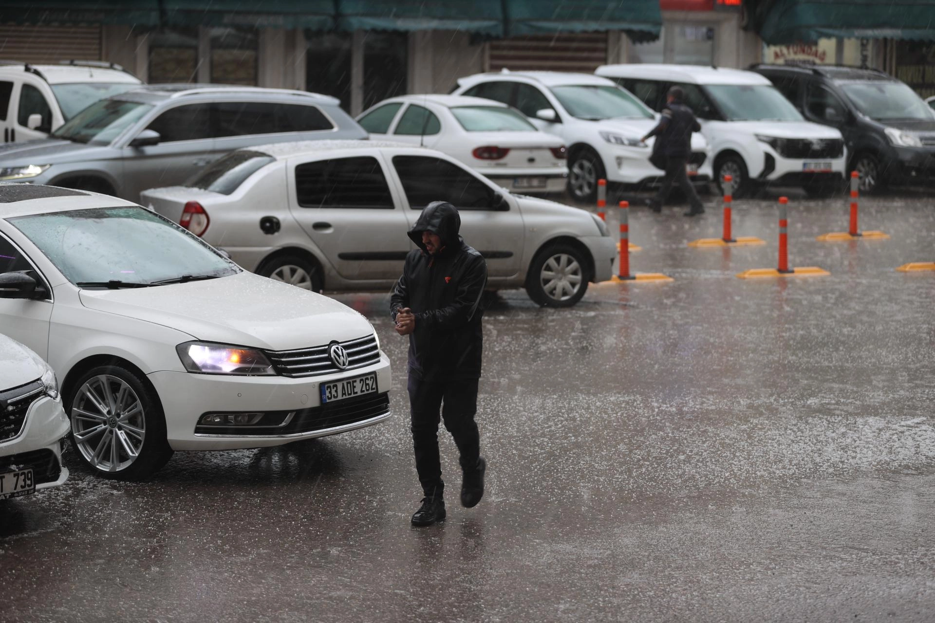 Bazı vatandaşların, dolu nedeniyle araçlarının zarar görmemesi için üzerini karton ve bezlerle örtmeye çalıştığı görüldü.