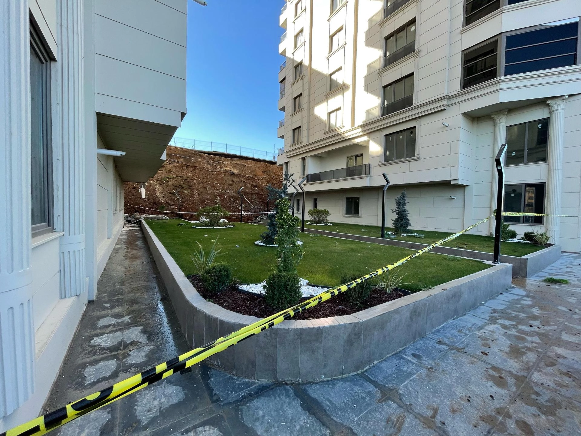 Esentepe Mahallesi'nde inşaatı kısa süre önce tamamlanan 3 bloklu bir sitede istinat duvarı henüz belirlenemeyen bir nedenle çöktü.