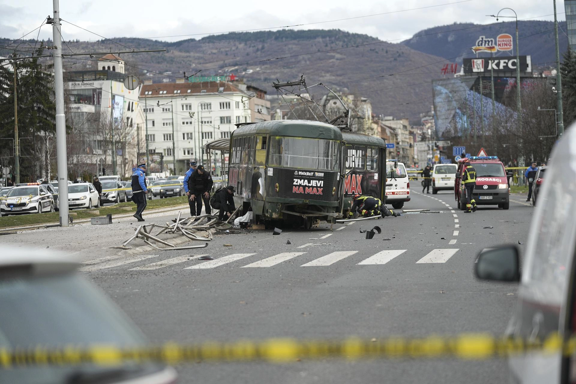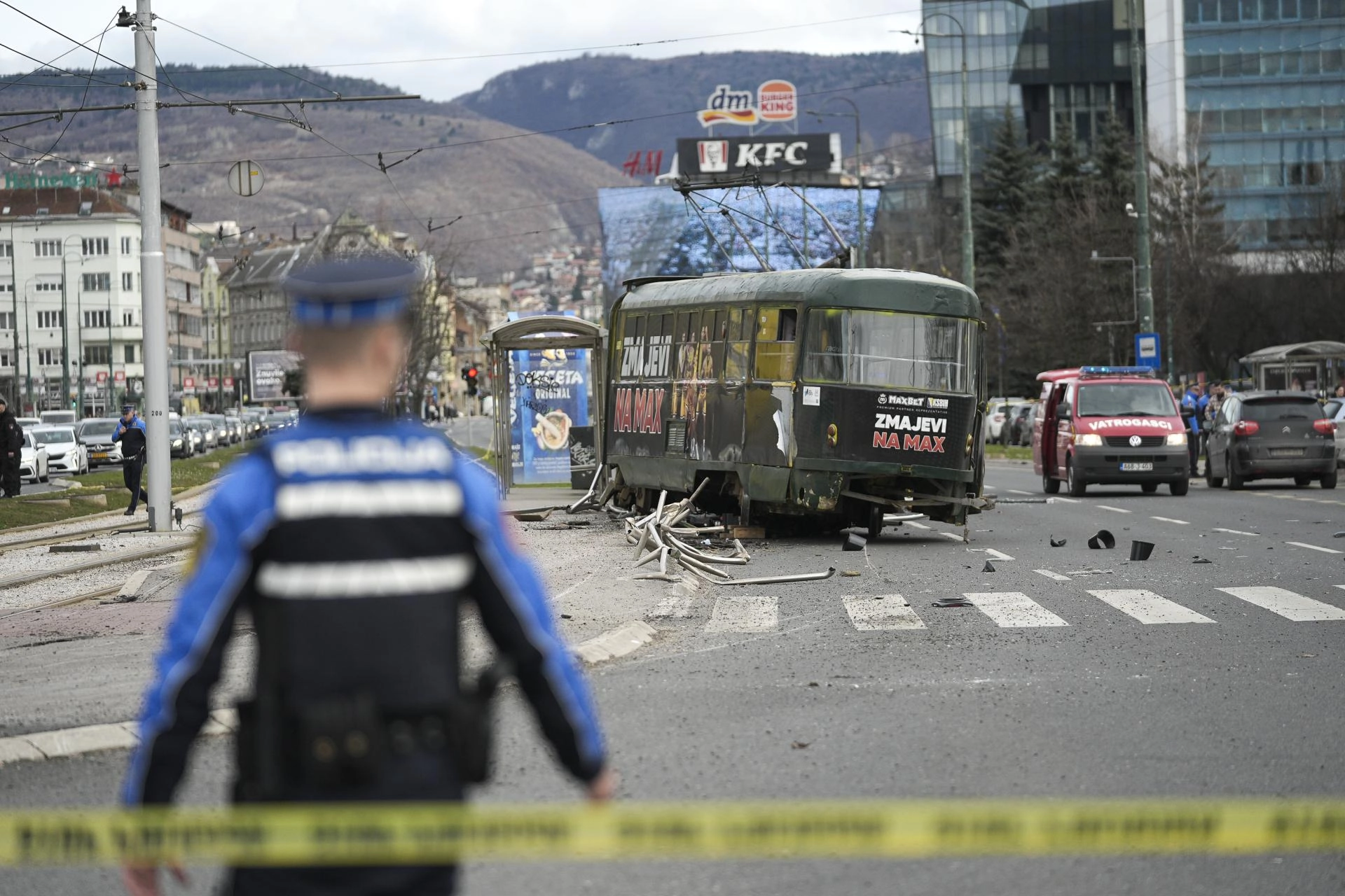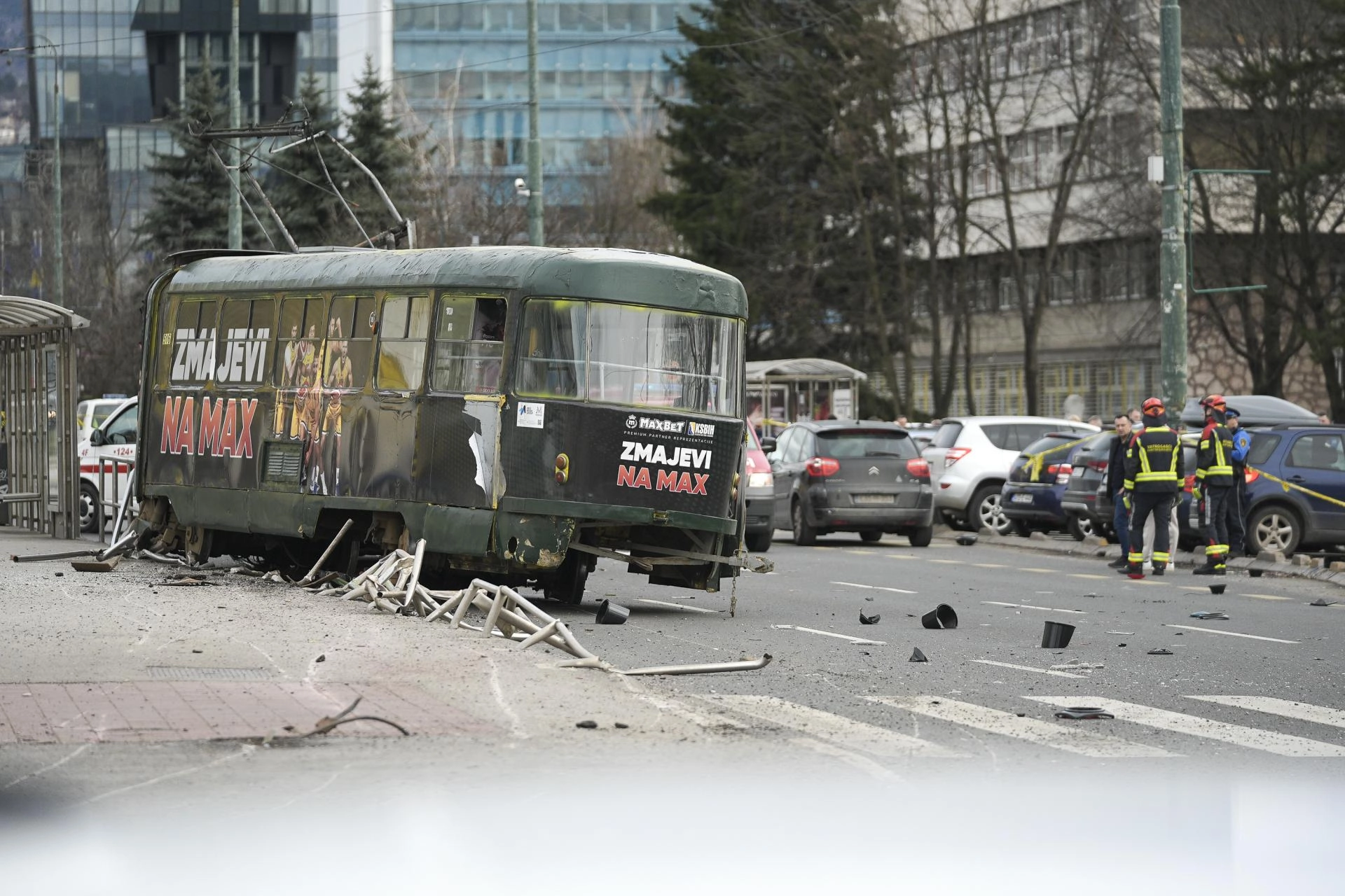 Saraybosna’da Ilıca ile Başçarşı arasında sefer yapan tramvay, Ulusal Müze Durağı’na yaklaşırken henüz bilinmeyen bir nedenle raydan çıktı.