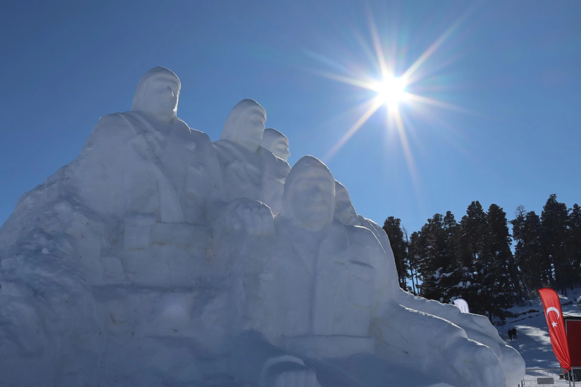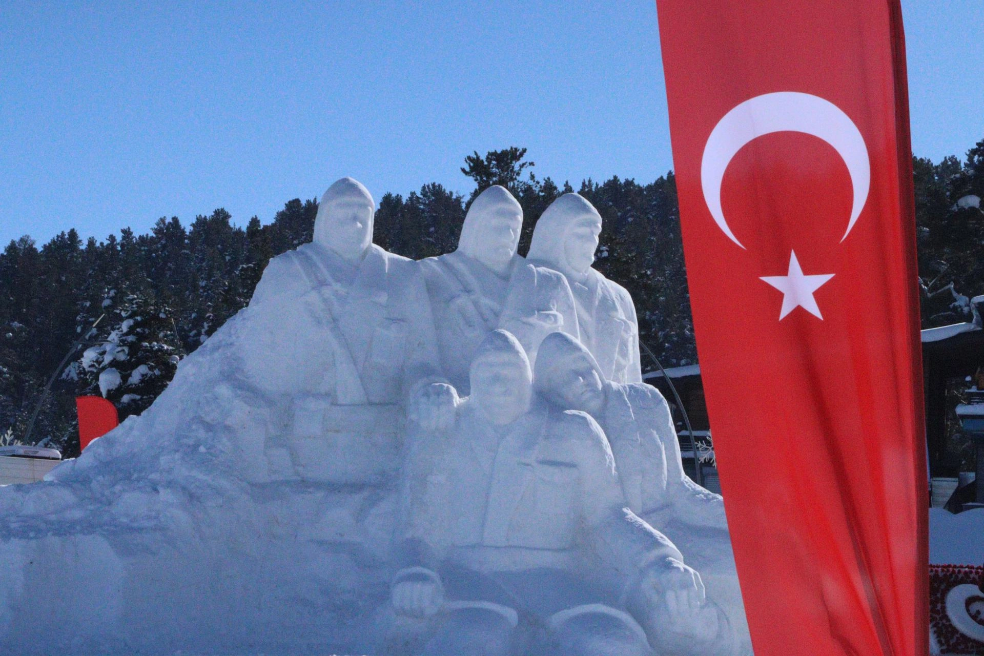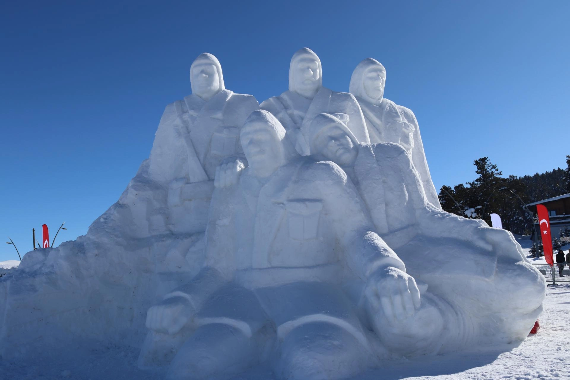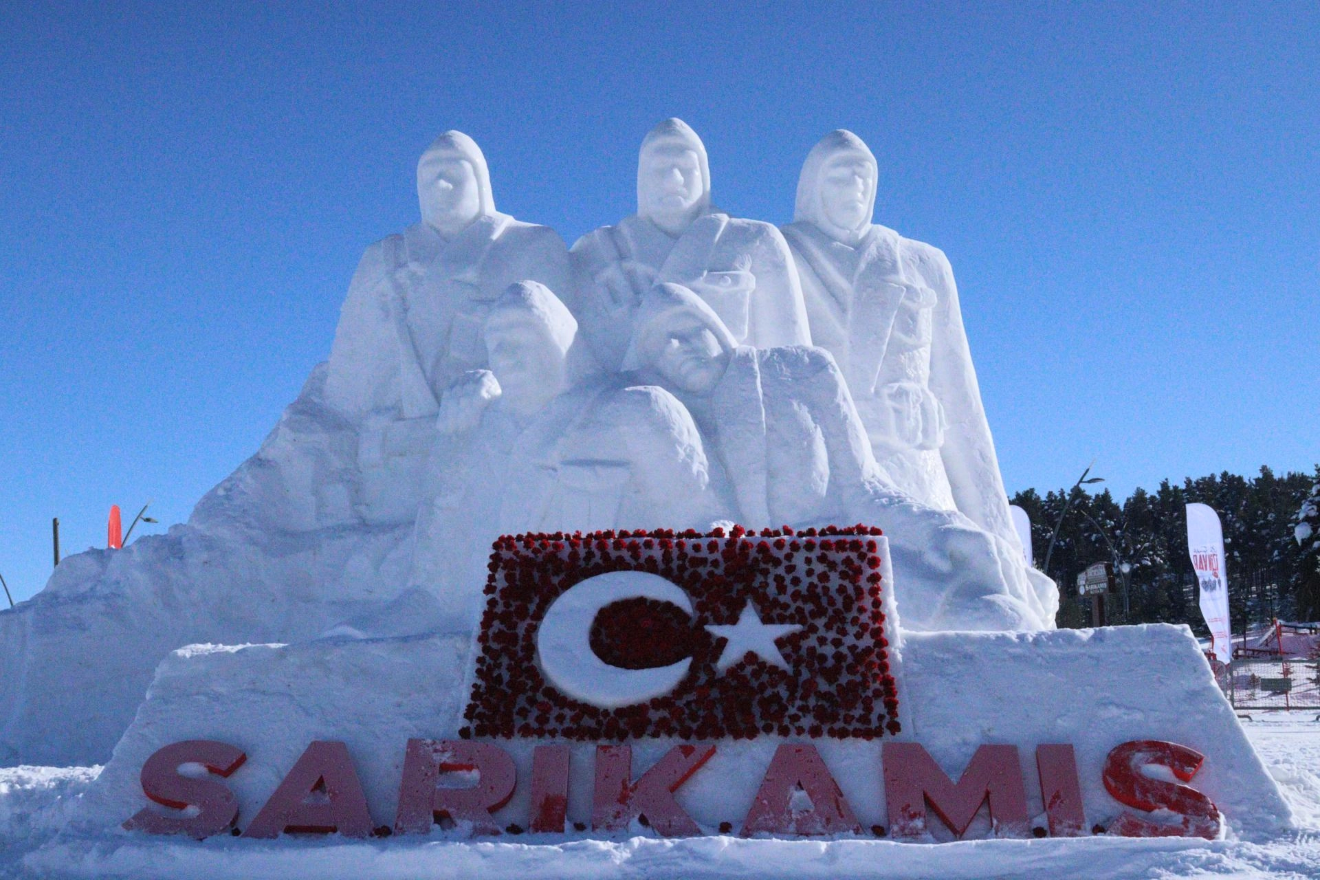 Bu yıl Sarıkamış Kayak Merkezi oteller bölgesi ile Kızılçubuk mevkisi olmak üzere iki noktada kardan heykeller yapıldı.