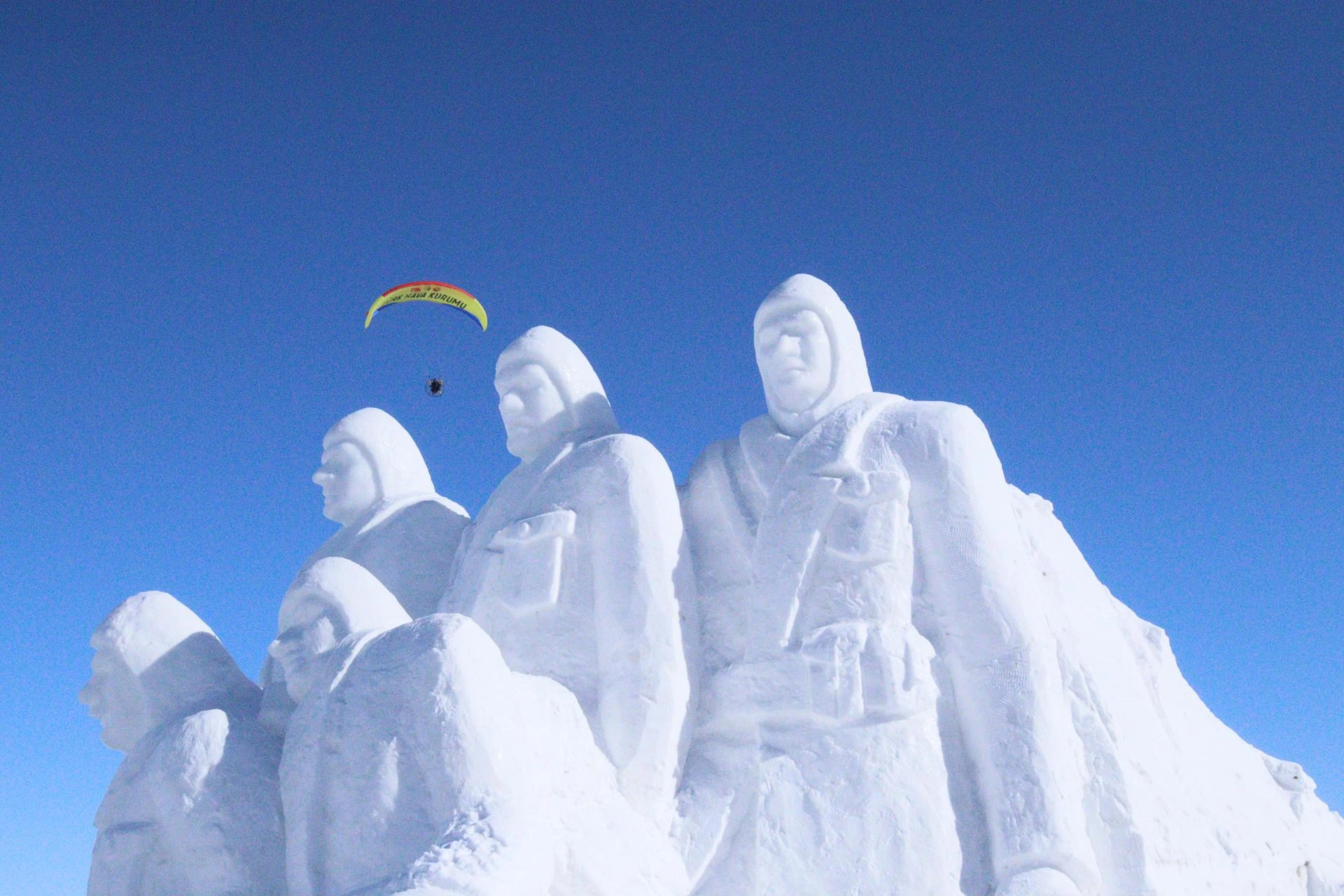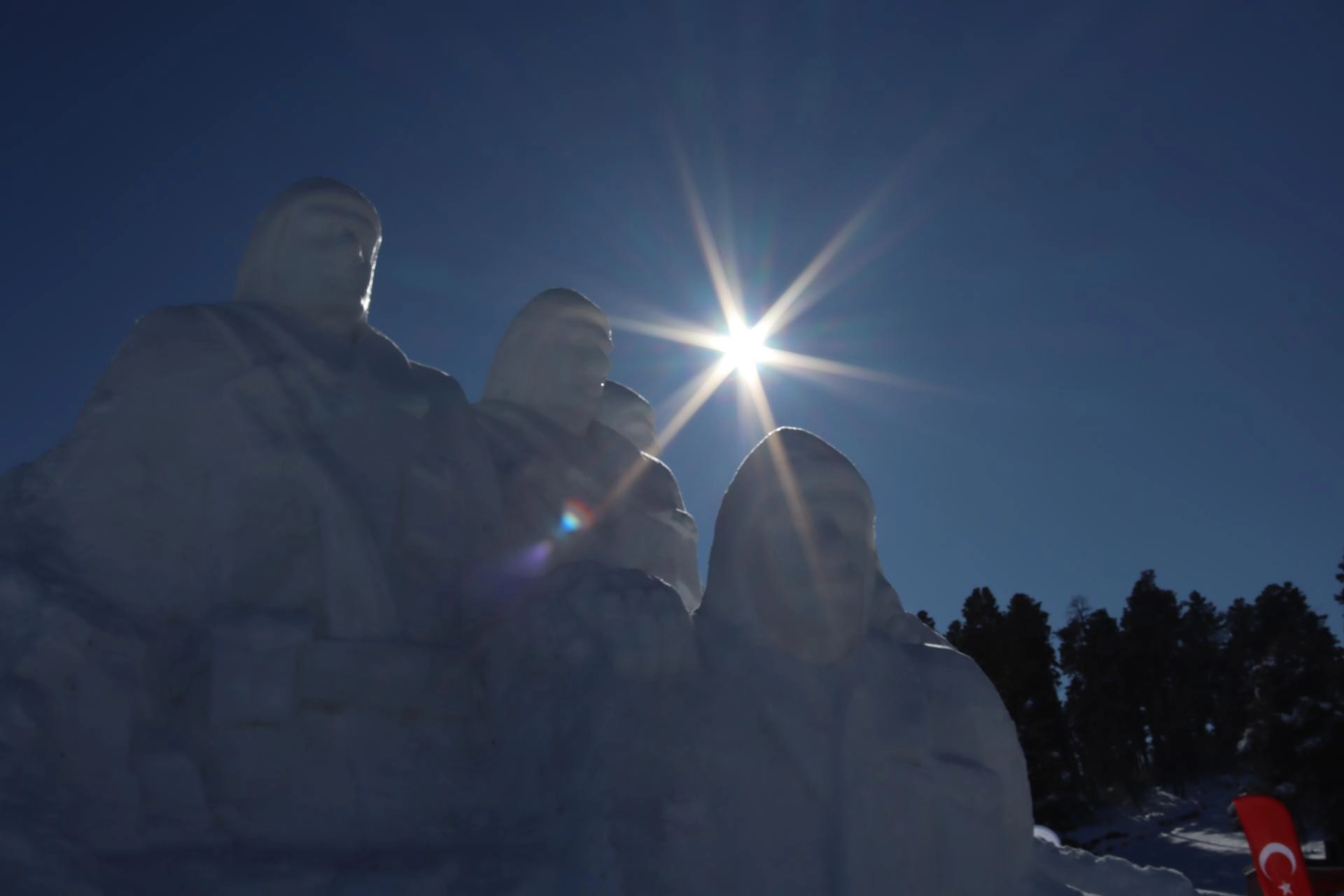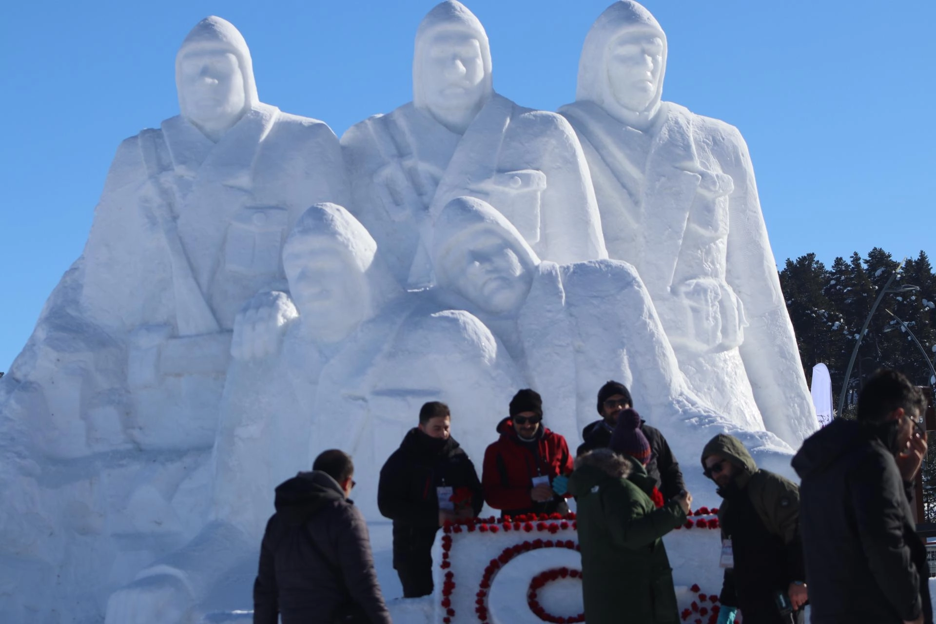 Zengin, AA muhabirine, anma etkinlikleri kapsamında heykellerin yapıldığını belirterek, "Son hazırlıklarımızı yapıyoruz. Her yıl düzenli olarak bayrağımızı buzdan yaparak karanfillerle kaplıyoruz." dedi.