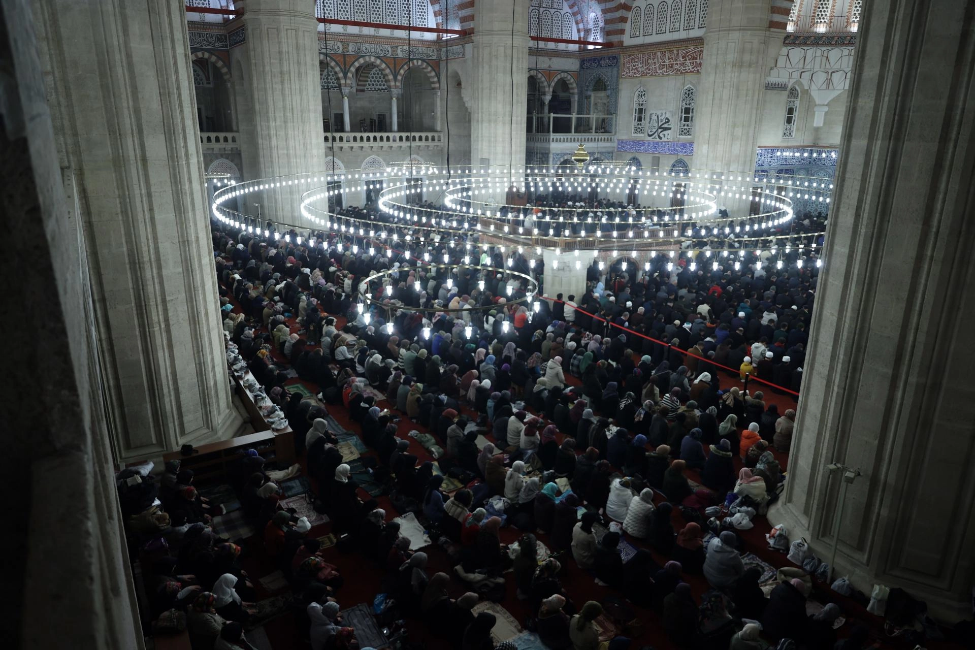 EDİRNE (AA) - Edirne'de restorasyon çalışmalarının ardından yeniden ibadete açılan Selimiye Camisi’nde ilk teravih namazı kılındı.