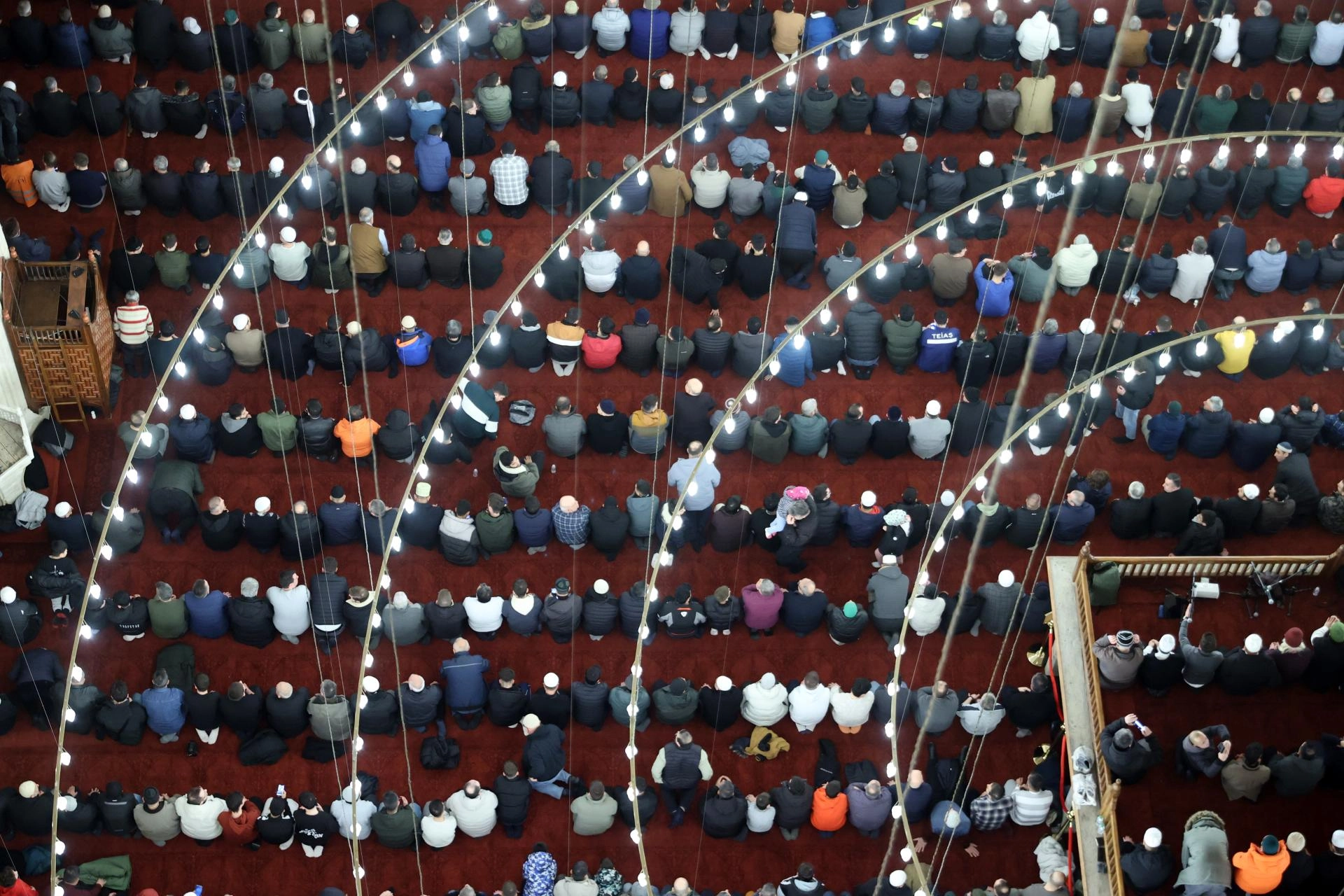 Akşam saatlerinden itibaren camiye gelen vatandaşlar, tarihi mabedin avlusunda ve çevresinde yoğunluk oluşturdu.