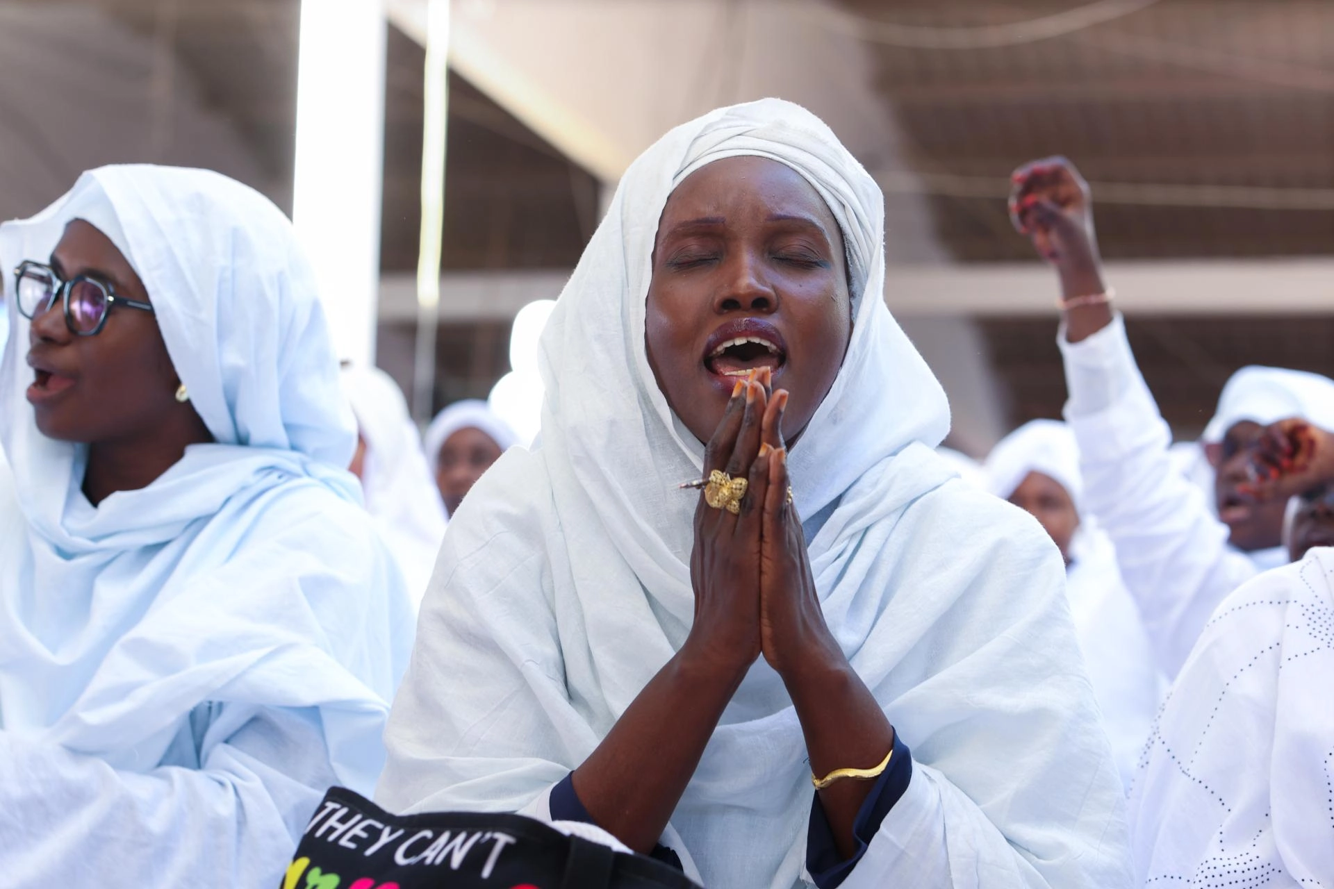 Yediden yetmişe bembeyaz giyinen on binlerce Layene mensupları, Atlantik okyanusu kıyısında, açık havada birlikte zikir çekti, ilahiler söyledi ve dua etti.