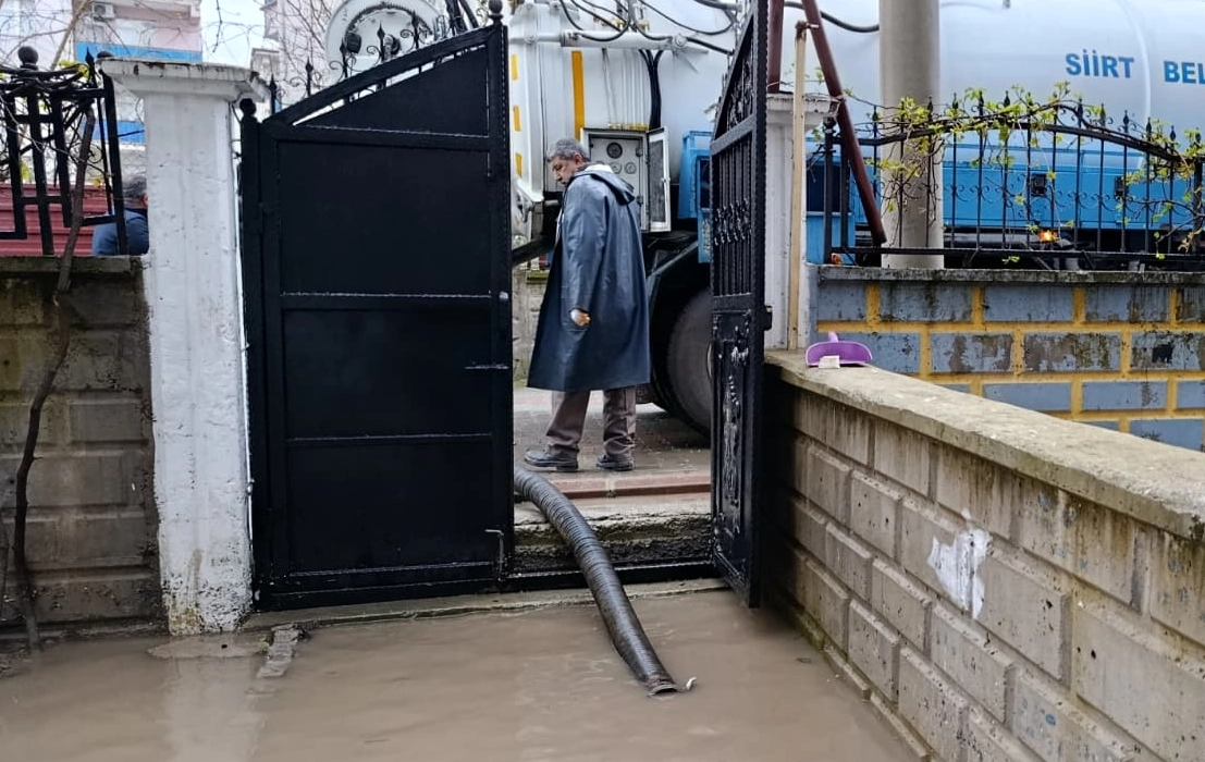 AFAD ve Kurtalan Belediyesi ekiplerinin su tahliyesi çalışmaları sürüyor.