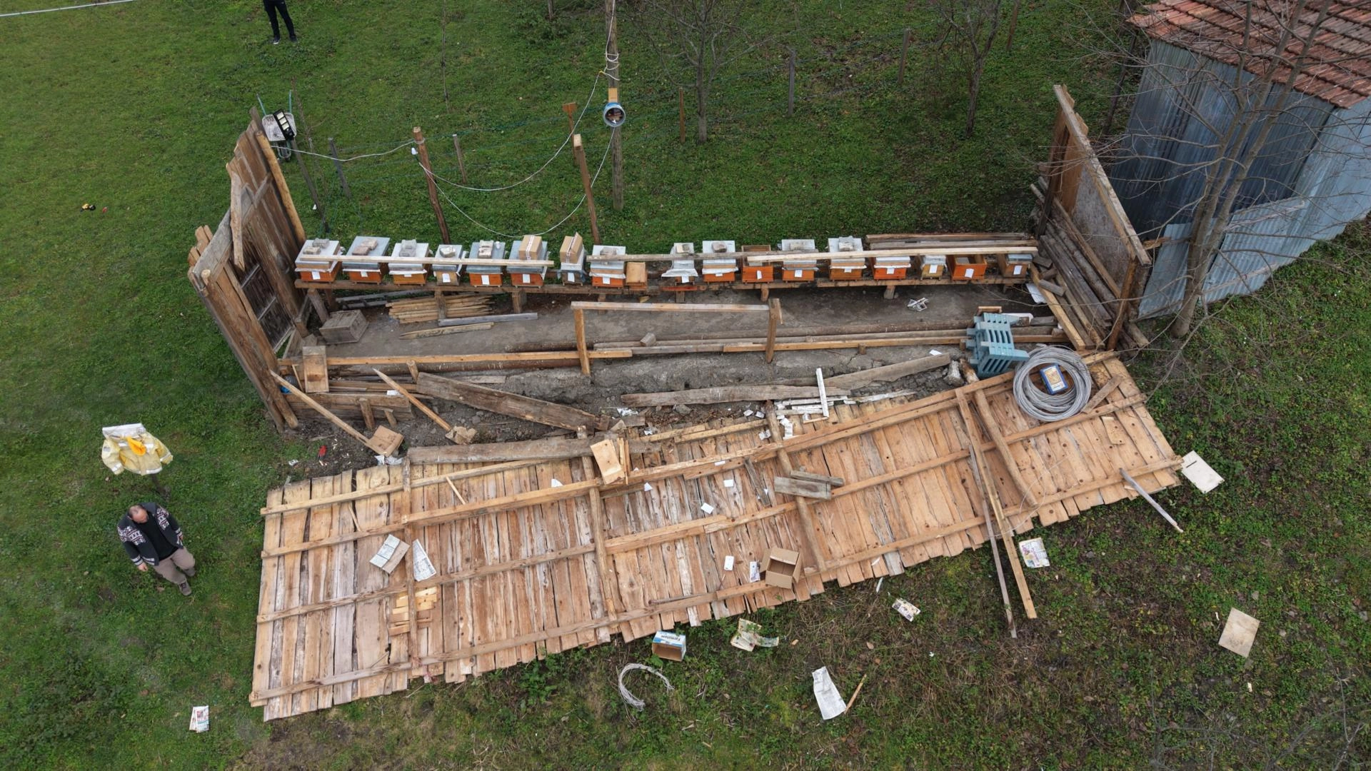 Arılığın ve arı kovanlarının uçması, güvenlik kamerasıyla görüntülendi.