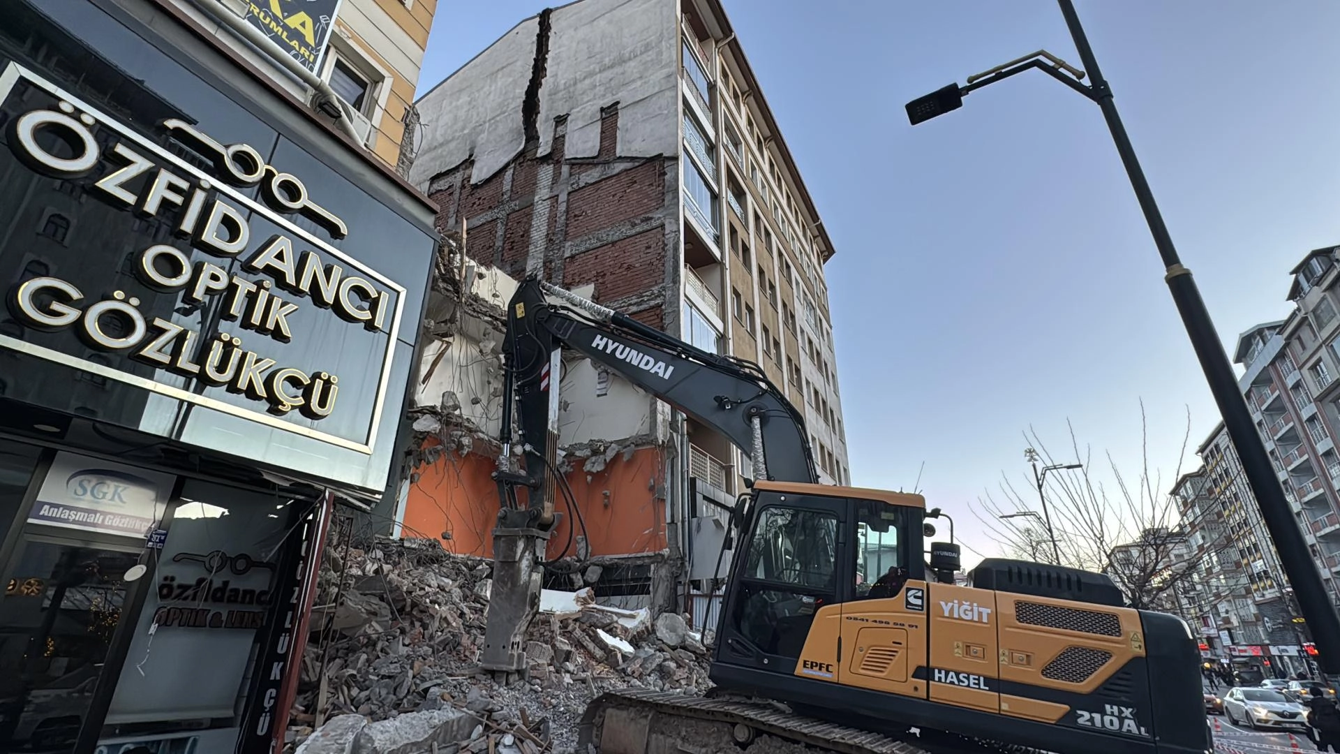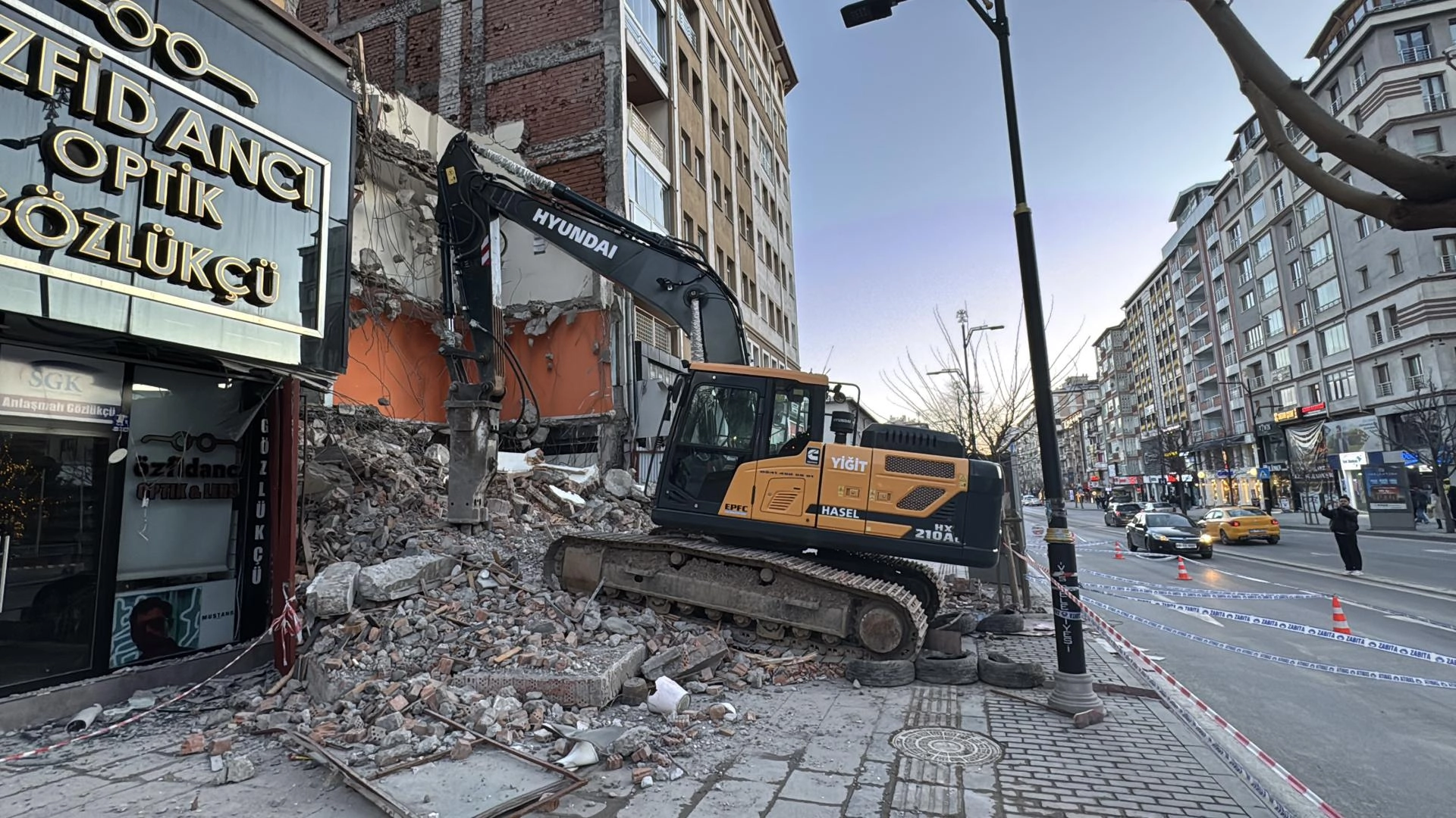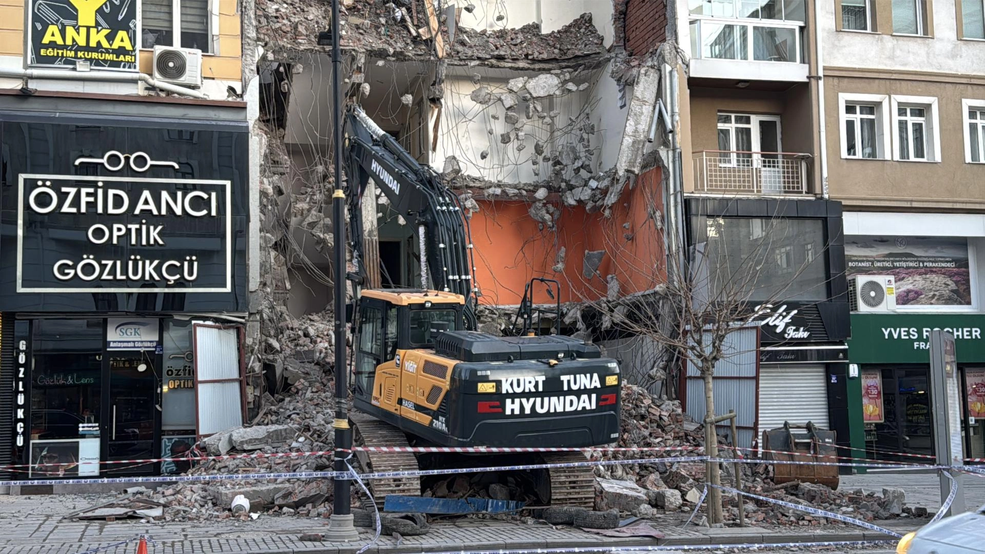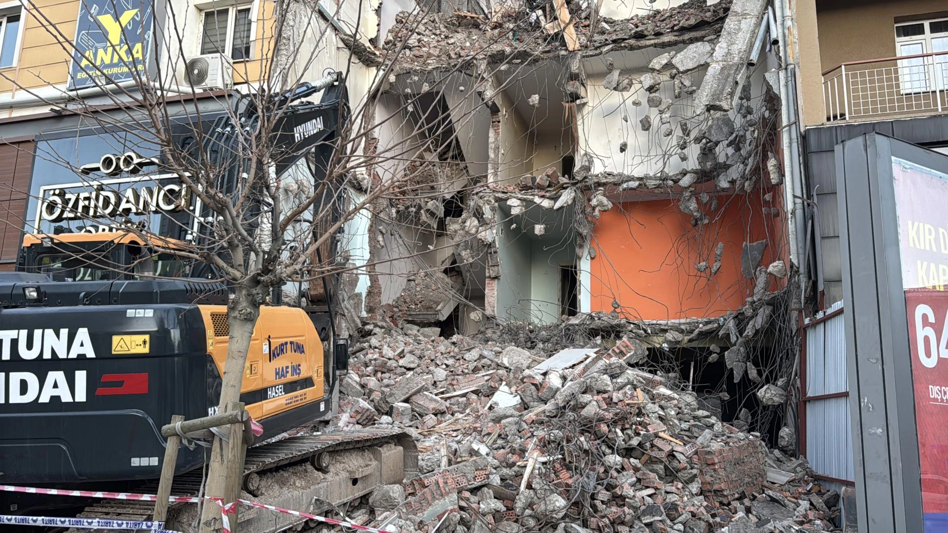 Örtülüpınar Mahallesi İnönü Bulvarı'nda bir binanın yıkım çalışmaları sırasında bitişiğinde yer alan binanın ana taşıyıcı kolonunda hasar meydana geldi.