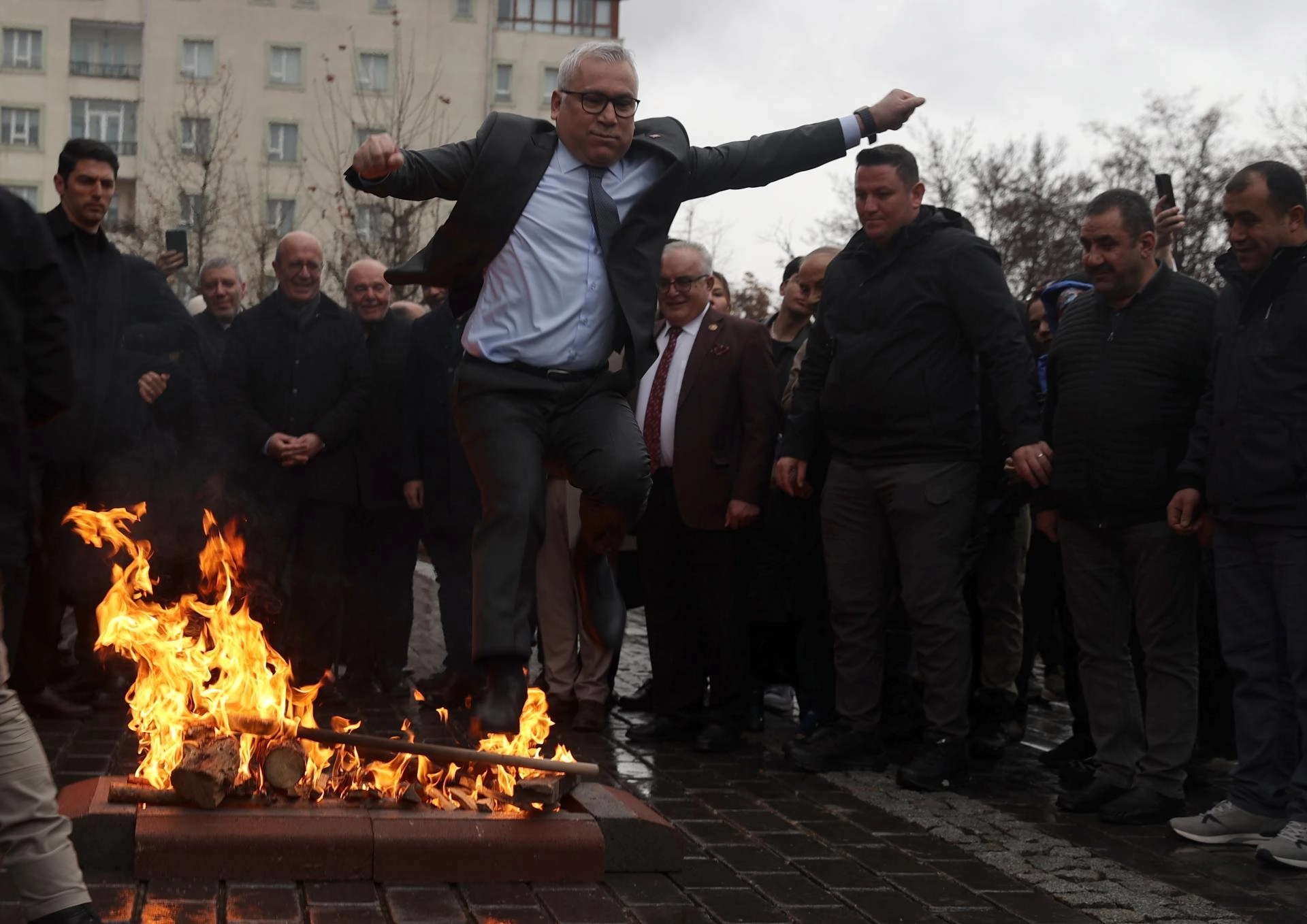Programda il protokolü, yakılan Nevruz ateşinin üstünden atladı.