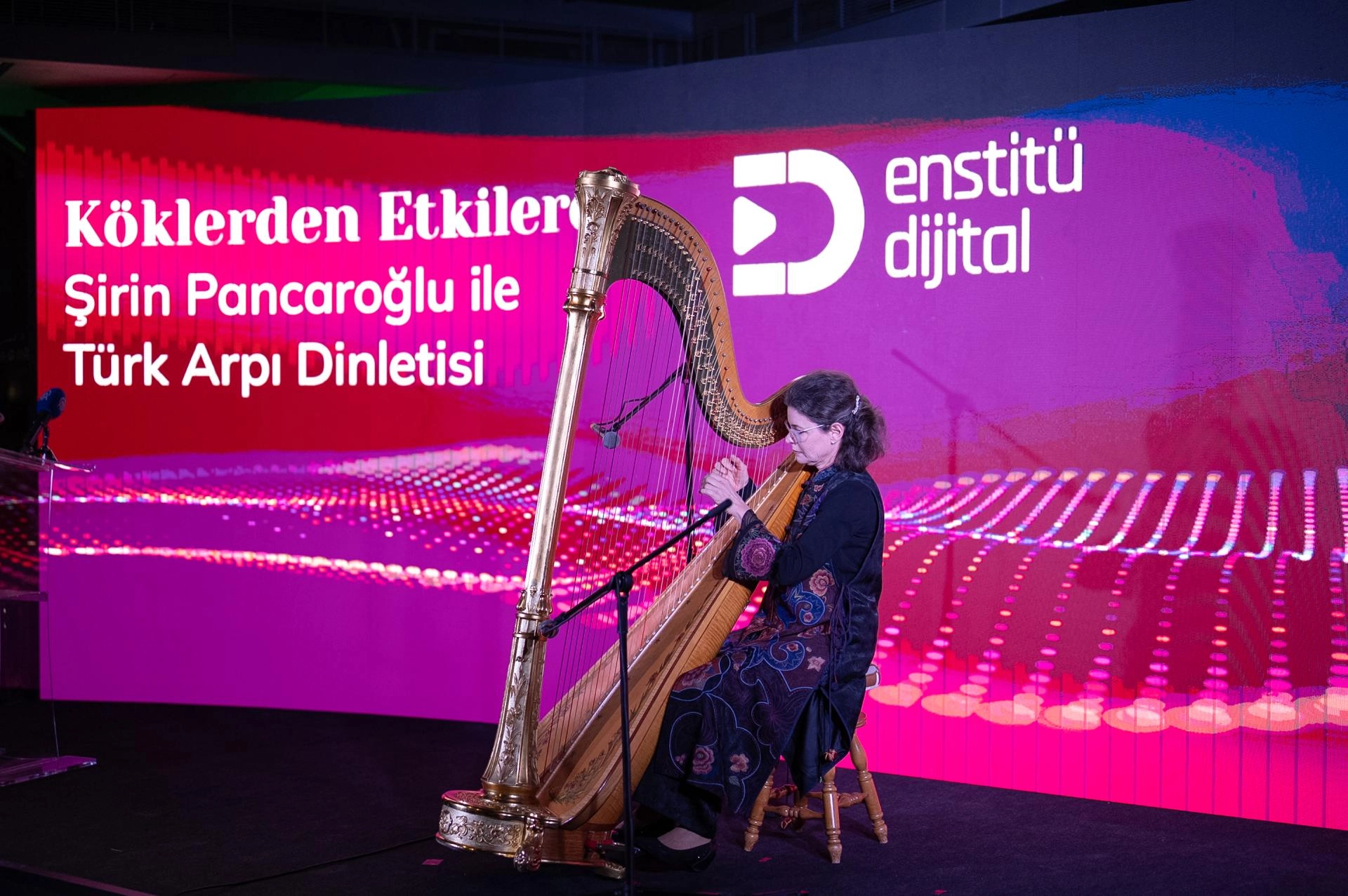 Sanatçı Şirin Pancaroğlu'nun "Köklerden Etkilere" başlığıyla Türk arp müziği dinletisi sunduğu program kapsamında, "Dijital Dünya Sosyal Bilimlerin Gelişimini Nasıl Etkileyecek?" başlıklı panel düzenlendi.