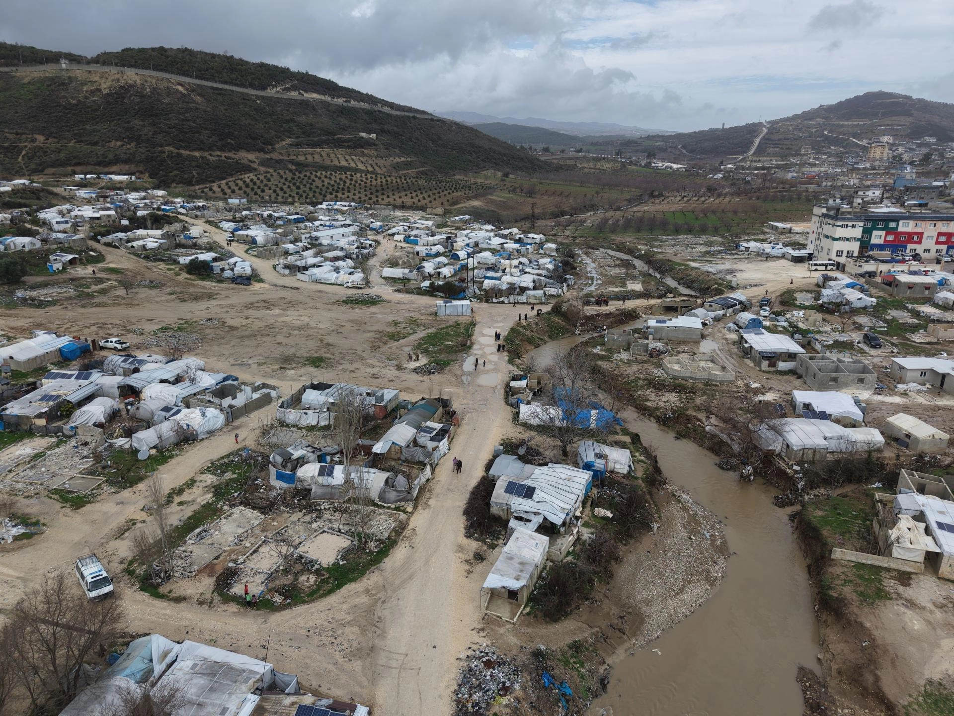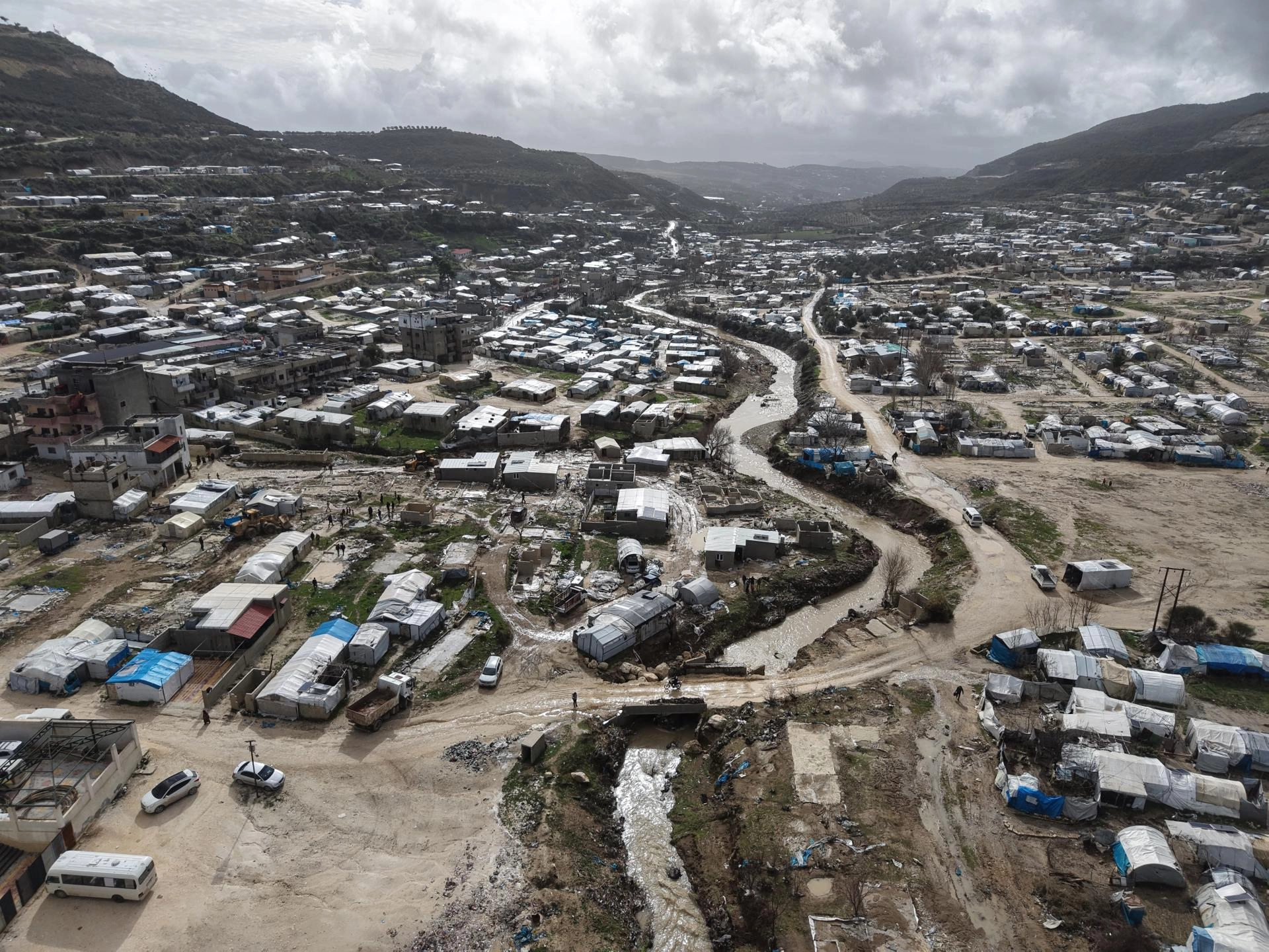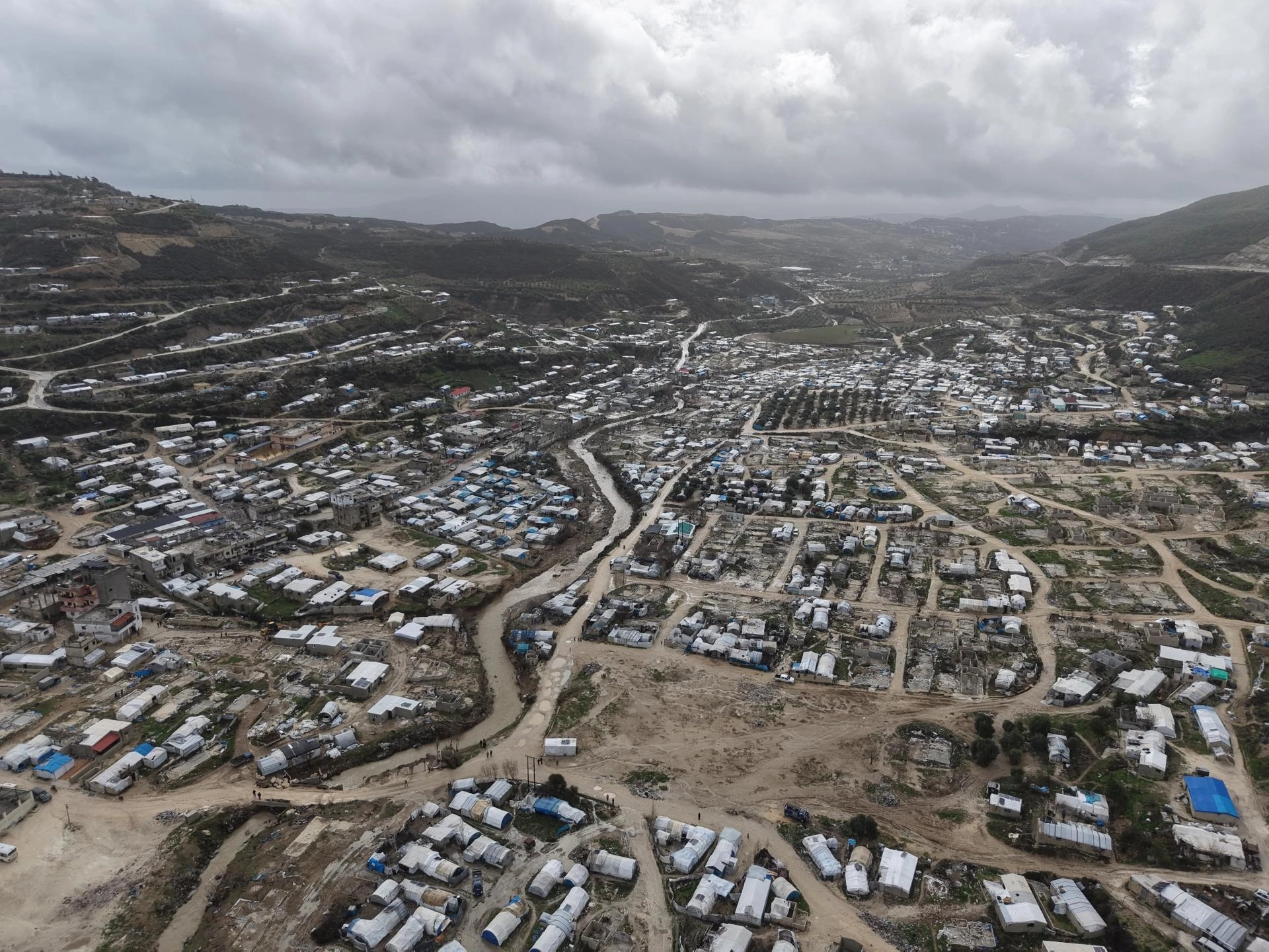 İdlib'in doğu kırsalında ani sağanakların ardından, dere kenarlarına kurulan derme çatma çadırların bulunduğu alanlar sular altında kaldı. Sel suları, köylerdeki yerleşim alanları ile tarım arazilerine zarar verdi. Bölgedeki 15 çadır kampı zarar gördü, yaklaşık 300 çadır ise kullanılamaz hale geldi.