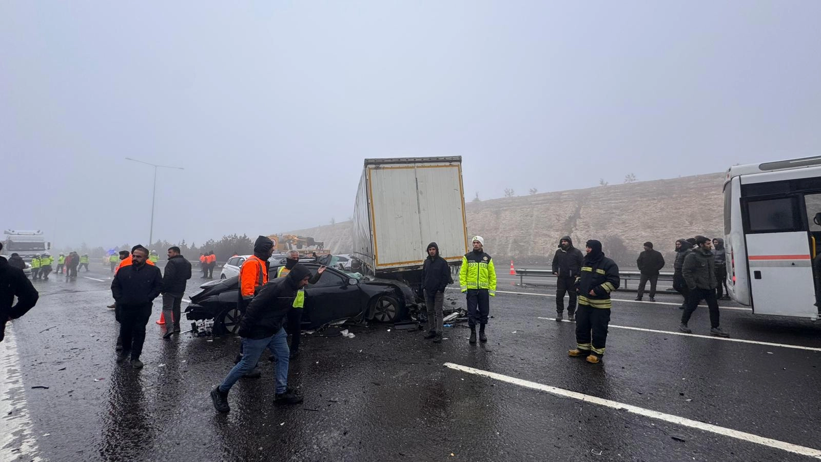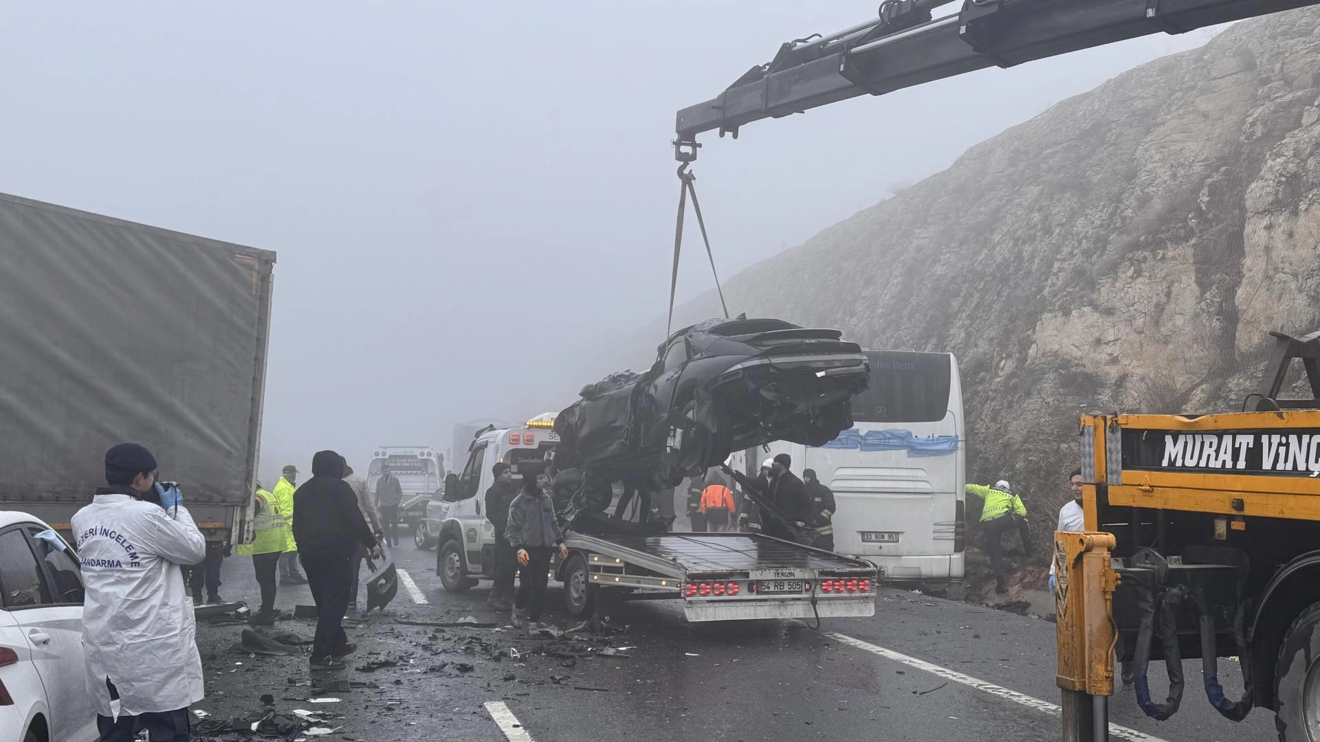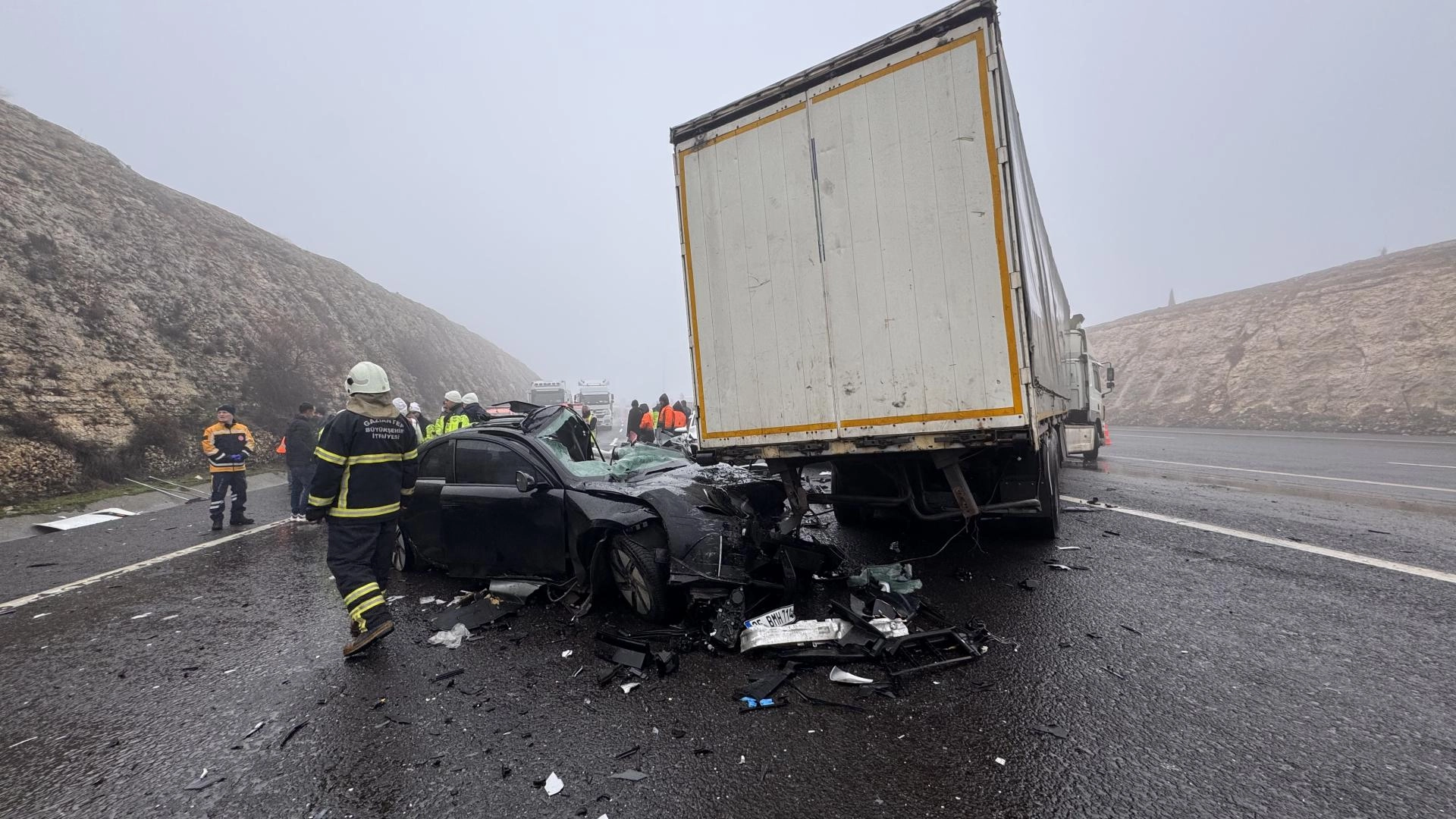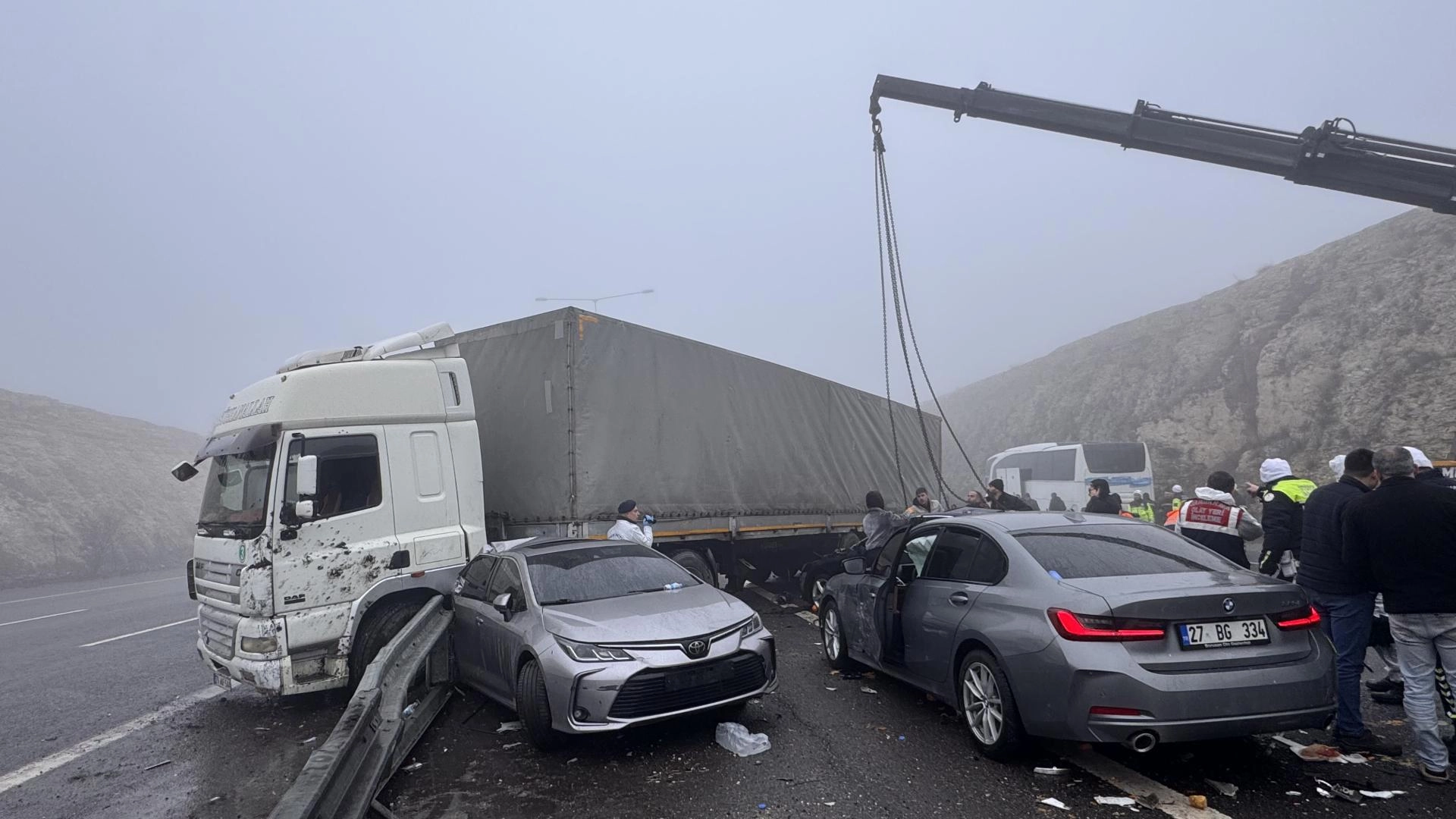 TAG Otoyolu'nun Gaziantep Doğu Gişeleri yakınlarında henüz bilinmeyen nedenle aralarında otobüs, tır ve otomobillerin de bulunduğu 7 aracın karıştığı zincirleme trafik kazası meydana geldi.