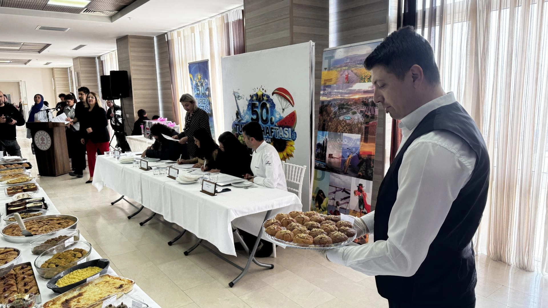 Yarışma öncesi konuşan İl Kültür ve Turizm Müdür Vekili Bünyamin Örnek, Tekirdağ’ın coğrafi işaretli Hayrabolu tatlısı ve peynir helvasının da aralarında bulunduğu 32 çeşit tatlının jüri tarafından değerlendirileceğini söyledi.