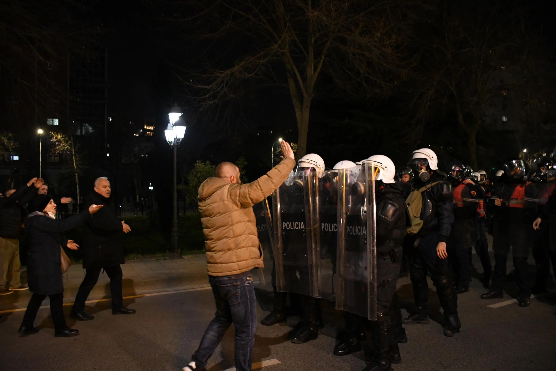Başbakanlık önündeki gösterinin ardından protestocular Arnavutluk Emniyet Müdürlüğüne yürüdü. Burada göstericiler ile güvenlik güçleri arasında arbede yaşandı.