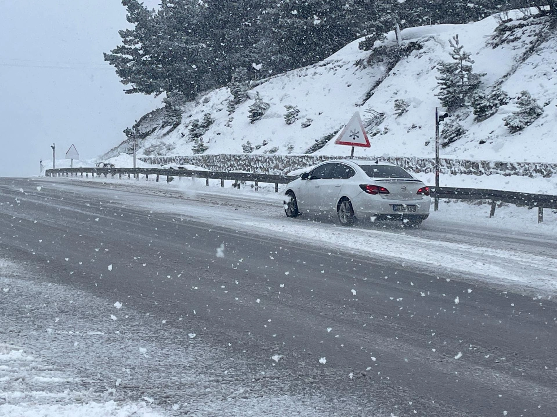 Karayolları ekipleri, 1650 rakımlı Çamlıbel Geçidi'nde yağışın artmasının ardından kar küreme ve tuzlama çalışması yürüttü.