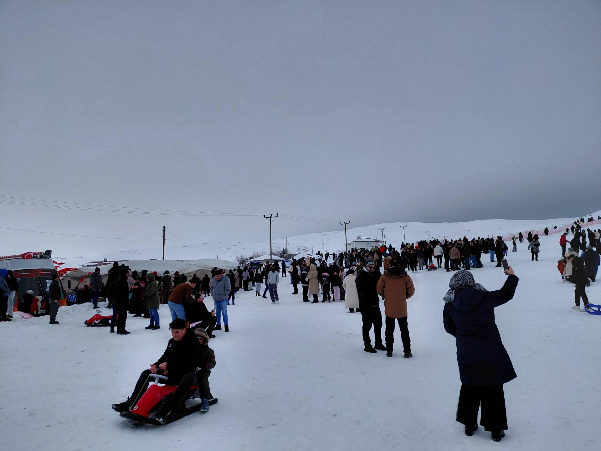 Başçiftlik Belediyesince gerçekleştirilen şenliğe katılanlar, yöreye özgü ipli kayak ve kızağın yanı sıra tepsi, şambrel ve naylonlarla kayarak gönüllerince eğlendi.