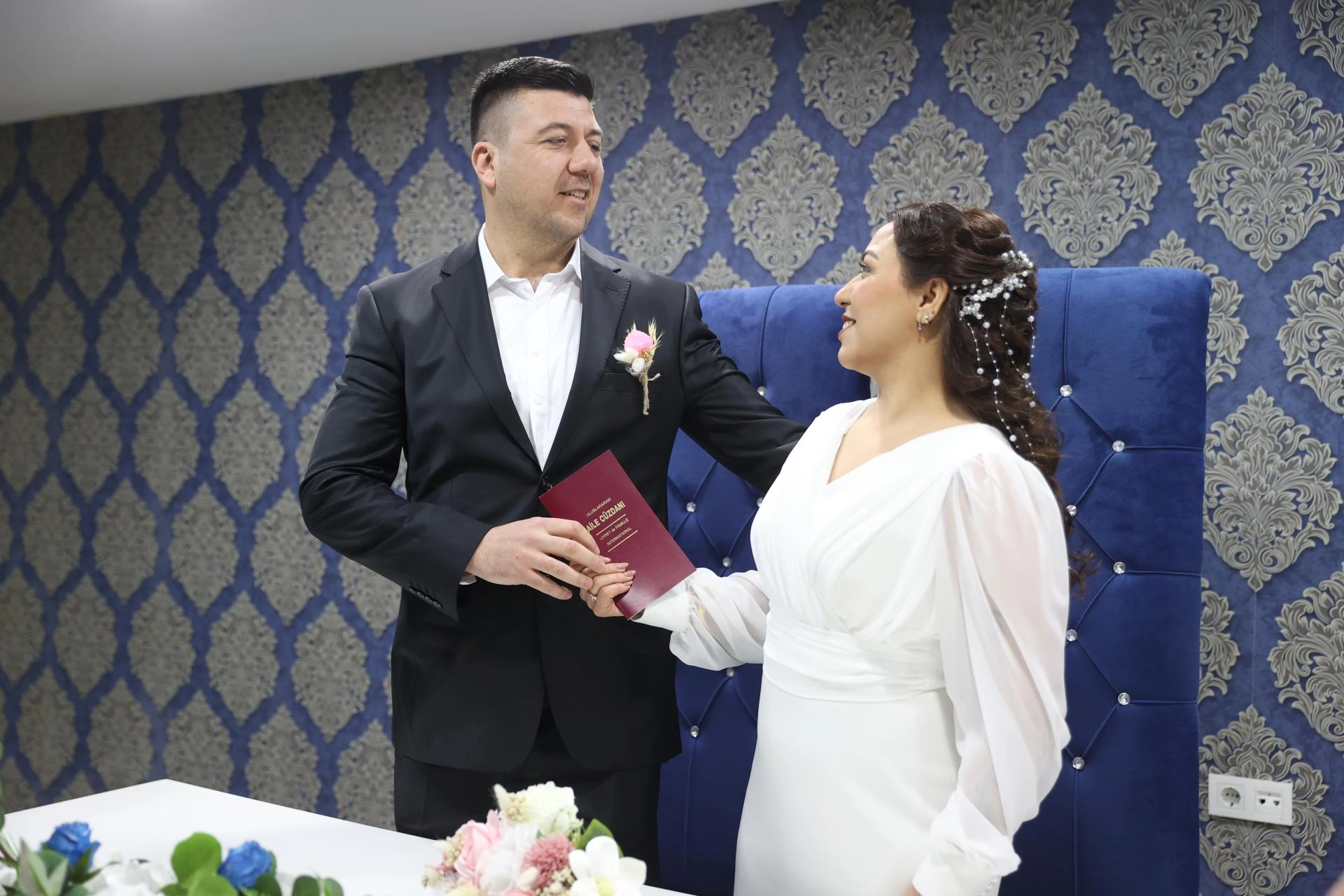 Kırklareli Belediyesi Nikah Salonu'nda düzenlenen törende nikahları kıyılan çiftlerden Sercan ve Meral Meydan çifti de nikah memurunun, "Hastalıkta, sağlıkta, iyi günde, kötü günde eş olmayı kabul ediyor musunuz?" sorusuna "evet" yanıtını verdi.