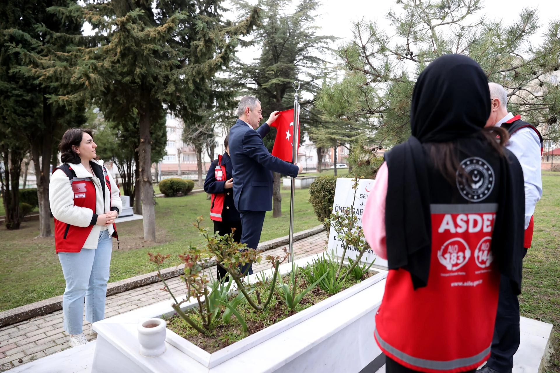 Aile ve Sosyal Hizmetler İl Müdürlüğü personeli ve koruma altındaki çocuklar, kabirlere karanfil bıraktı.