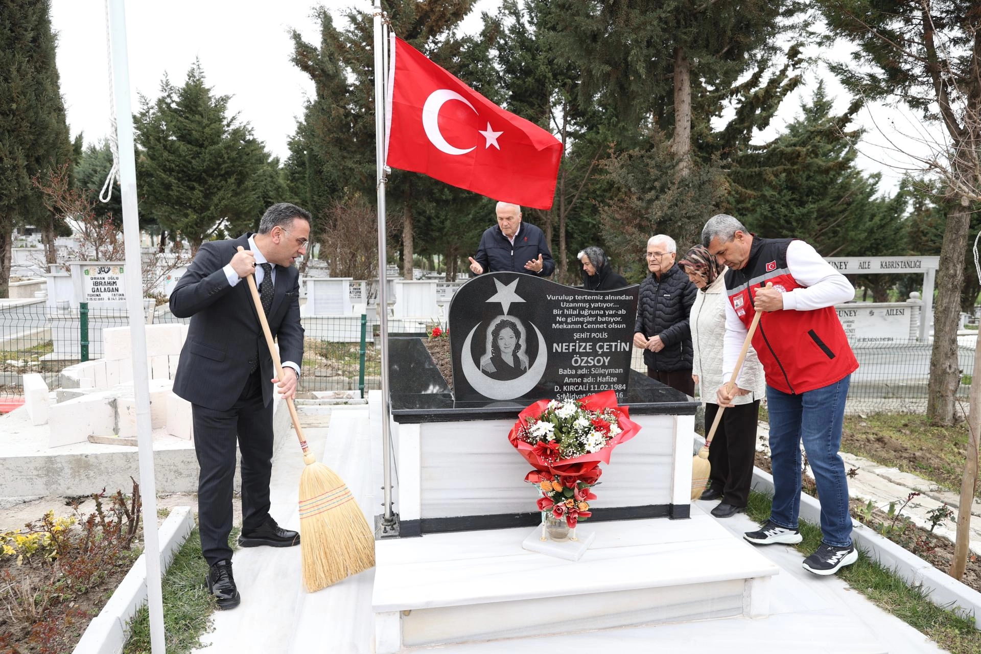 Aile ve Sosyal Hizmetler İl Müdürü Harun Tohumcu ile müdürlük personeli, şehit kabirlerinde temizlik ve bakım çalışması yaptı. Şehit aileleri de yapılan çalışmadan dolayı teşekkür etti.